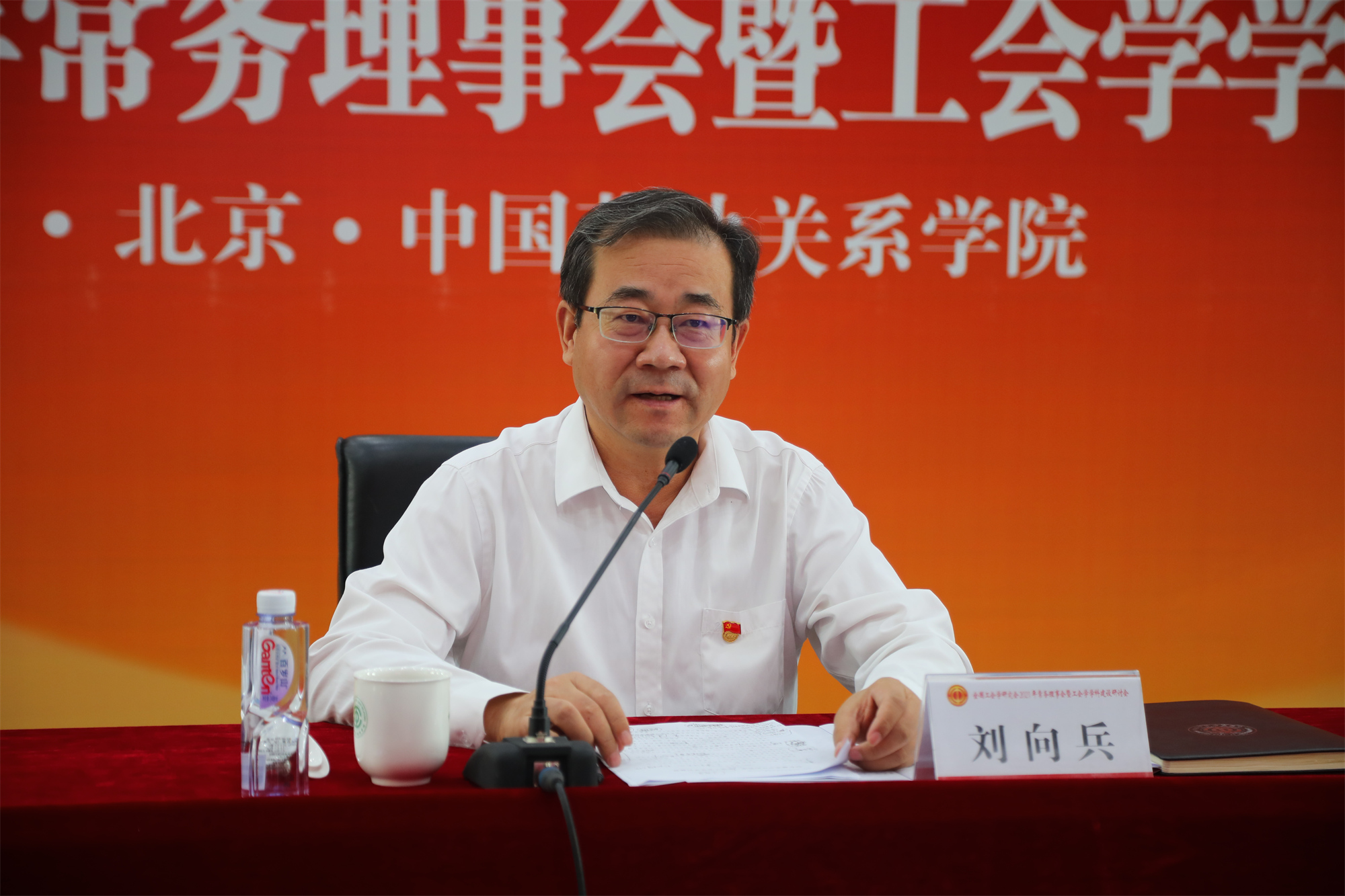 刘向兵会长做了题为《站在建党百年的高度、高质量推进工会学学科建设》的讲话。他指出,要站在建党百年的高度,以习近平新时代中国特色社会主义思想为指导,坚持解放思想、守正创新、实践导向,把深入学习贯彻习近平总书记关于工人阶级和工会工作的重要论述,加强新时代中国特色社会主义工会学理论研究与学科建设推向新阶段,做出新贡献:一是在提高思想认识上狠下功夫,从新时代党领导工运事业发展的战略高度来看待工会学学科建设与发展,打开眼界、打开胸襟、打开思路。二是在理论体系创新上狠下功夫,深入研究马克思主义和马克思主义中国化工会理论最新成果,总结改革开放以来工会学理论研究成就,加强调查研究、用鲜活的案例、基础学科的方法和范畴来拓展工会学研究,用学术讲工会、用学术讲政治,完善中国特色社会主义工会学理论与学科体系。三是在加强队伍建设上狠下功夫,重视工会学学科建设人才的梯队培养,加强工会学学科领军人才的选树、骨干教师的遴选、后备教师的培养,构建起一支专兼结合、老中青结合工会学理论研究和工会培训教育优秀师资队伍。他认为,各位副会长、常务理事的发言,充分体现了常务理事会为研究会发展把脉定向的作用,充分体现了大家对工会学、工运理论研究的深厚情怀、使命担当和真知灼见,形势喜人、形势逼人。研究会秘书处要认真总结整理梳理,积极推进落实,与大家携手努力,高质量推动工会学学科建设。