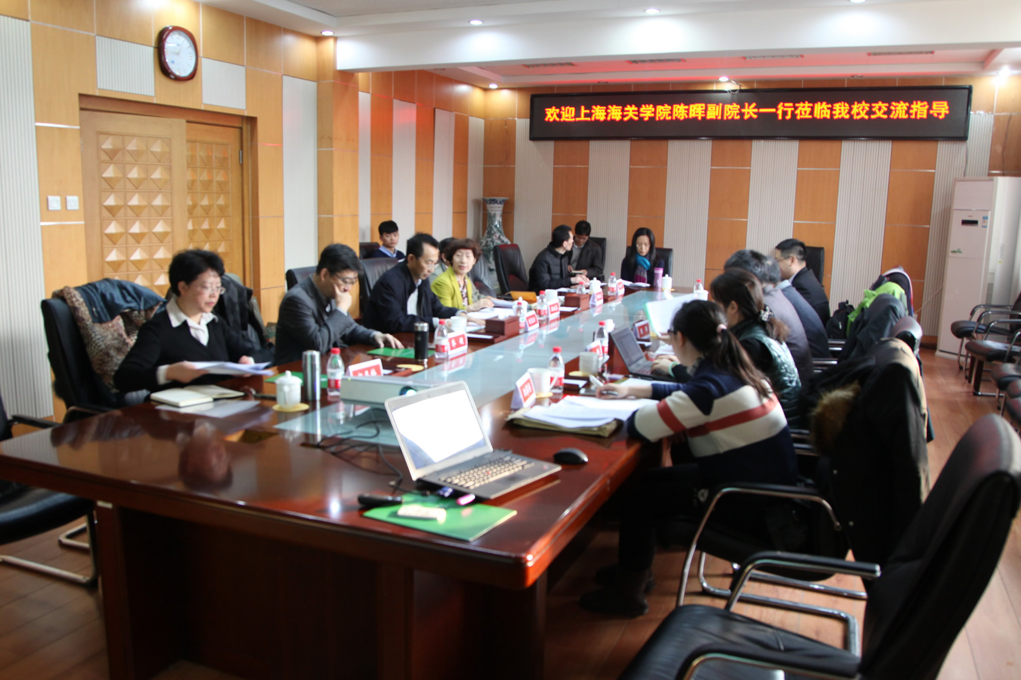 刘玉方副校长首先对上海海关学院陈晖副院长一行的到访表示热烈欢迎,并介绍了我校的发展历史、基本现状,申办研究生到培养公共管理专业硕士的主要工作思路、工作目标和工作内容、 “十三五”学科规划中研究生的主要目标和重点工作。