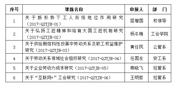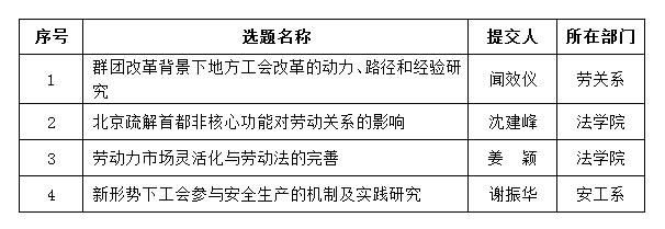 根据《全总工会理论研究会2017年度委托课题招标公告》的要求,学术委员会投票表决出了6项委托课题,审议通过了4项校级重点课题选题,讨论通过了《中国劳动关系学院科研经费管理办法》。为更好开展工作,学术委员会讨论通过了工作组分组建议,校学术委员会分为发展规划组、学科建设工作组、科研工作组(包括智库建设)、人才培养工作组、学术道德与规范工作组、师资队伍建设规划工作组等六个组。会议还研讨了学校科研机构设置和科研管理制度修订等问题。