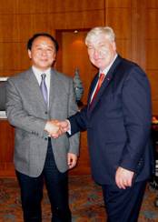 会晤中,双方就中国农民工问题和未来合作进行了深入探讨。应德方提议,李德齐院长和乔健副教授分别就中国农民工问题的历史背景、发展现状及工会农民工工作谈了各自的看法。李德齐院长指出,农民工是中国在市场化、工业化和城市化过程中出现的必然现象,也是中国政府由社会管理向社会治理模式转变过程中出现的一个涉及人口流动与人口可持续保障的问题。现阶段,随着第二代农民工逐渐成为中国工人阶级的重要新生力量,其对社会经济建设的贡献率及其权利意识与组织意识也随之增强,并对中国的社会经济政策、劳动立法和中国工会的组建与维权工作都提出了新的要求。近年来,中国政府和工会在有关推动落实农民工权益保障等方面取得了积极进展,尤其为应对国际金融危机采取并实施了一系列卓有成效的政策措施。