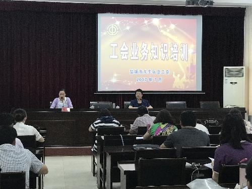 应江苏大丰区总工会委托,我校工会学院承担聘用工会工作者考试命题、考核、培训等工作。为确保考试工作的顺利进行,我校研究生处组织教师赴大丰区总工会,就考试命题、考核,以及学习工会业务知识,提升工会干部综合工作能力培训等工作开展交流与合作。各位专家深入讲解了习近平总书记关于工人阶级和工会工作的重要谈话精神、党的十八届六中全会精神、工会业务知识、党风廉政建设和作风建设相关知识,以及当前工会开展的一些重点工作等,有效提升了基层工会干部的综合业务素质。