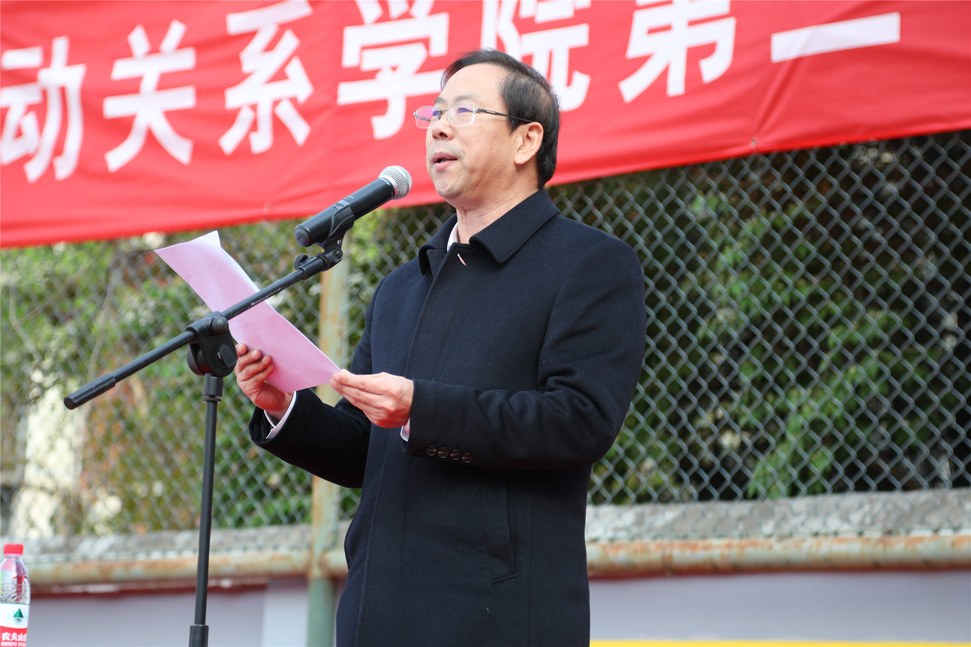 学校党委副书记、纪委书记、工会主席成国一致开幕辞,代表学校党委和领导班子向本次运动会的召开表示热烈祝贺,向一年来为学校赢得荣誉的运动员、教练员和为学校群众体育运动蓬勃开展付出辛勤劳动的老师们、同学们表示感谢。他指出,学校是以“中国”和“劳动”冠名,以研究劳动科学、培育劳动英才、弘扬劳动精神为神圣使命和鲜明特色的高校,希望大家要发扬体育精神、弘扬劳动精神,用体育这种创造性劳动打造属于自己的青春,并将体育运动中所蕴涵的不断进取、勇攀高峰的拼搏精神转化为建设高水平大学的强大动力,努力将学校的事业发展推向“更高、更快、更强”的新境界,早日实现将学校建设成为劳动关系和工会领域国内一流、国际知名大学的宏伟目标。体育教学部教师岳欣和工会学院学生谢宇莹分别代表裁判员和运动员宣誓。
