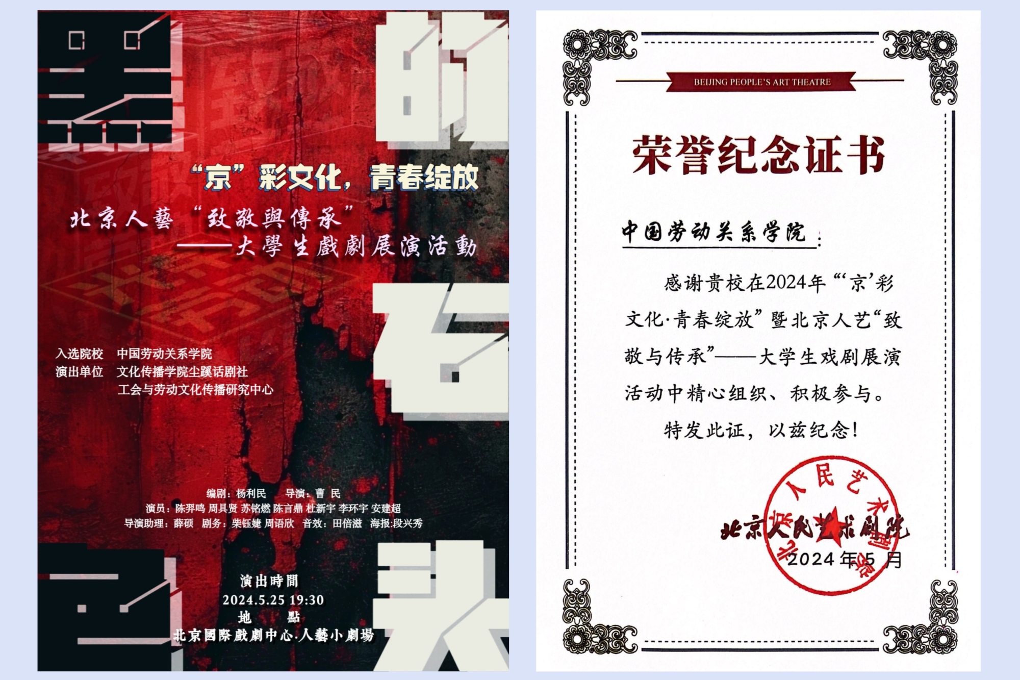 “京”彩文化 青春绽放——我校工人题材话剧《黑色的石头》在北京人艺成功展演 - 中国劳动关系学院新闻网