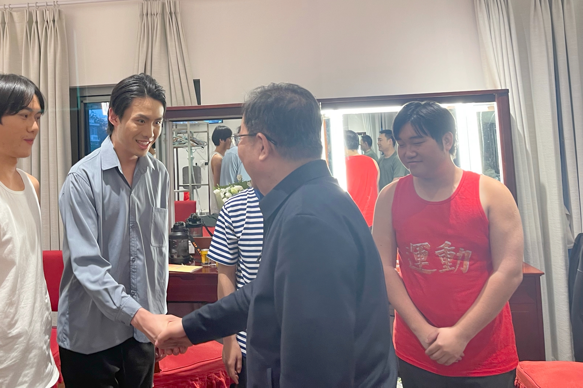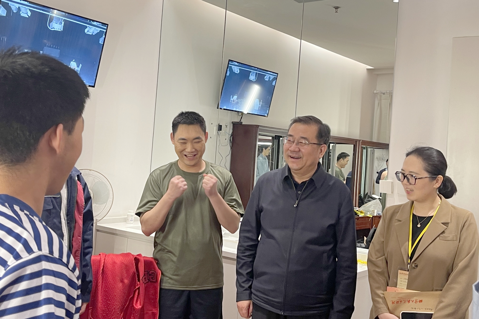 演出开始前,刘向兵书记来到后台看望参演学生,对他们以实际行动致敬劳动与劳动者的精神表示赞赏,并预祝演出取得圆满成功。