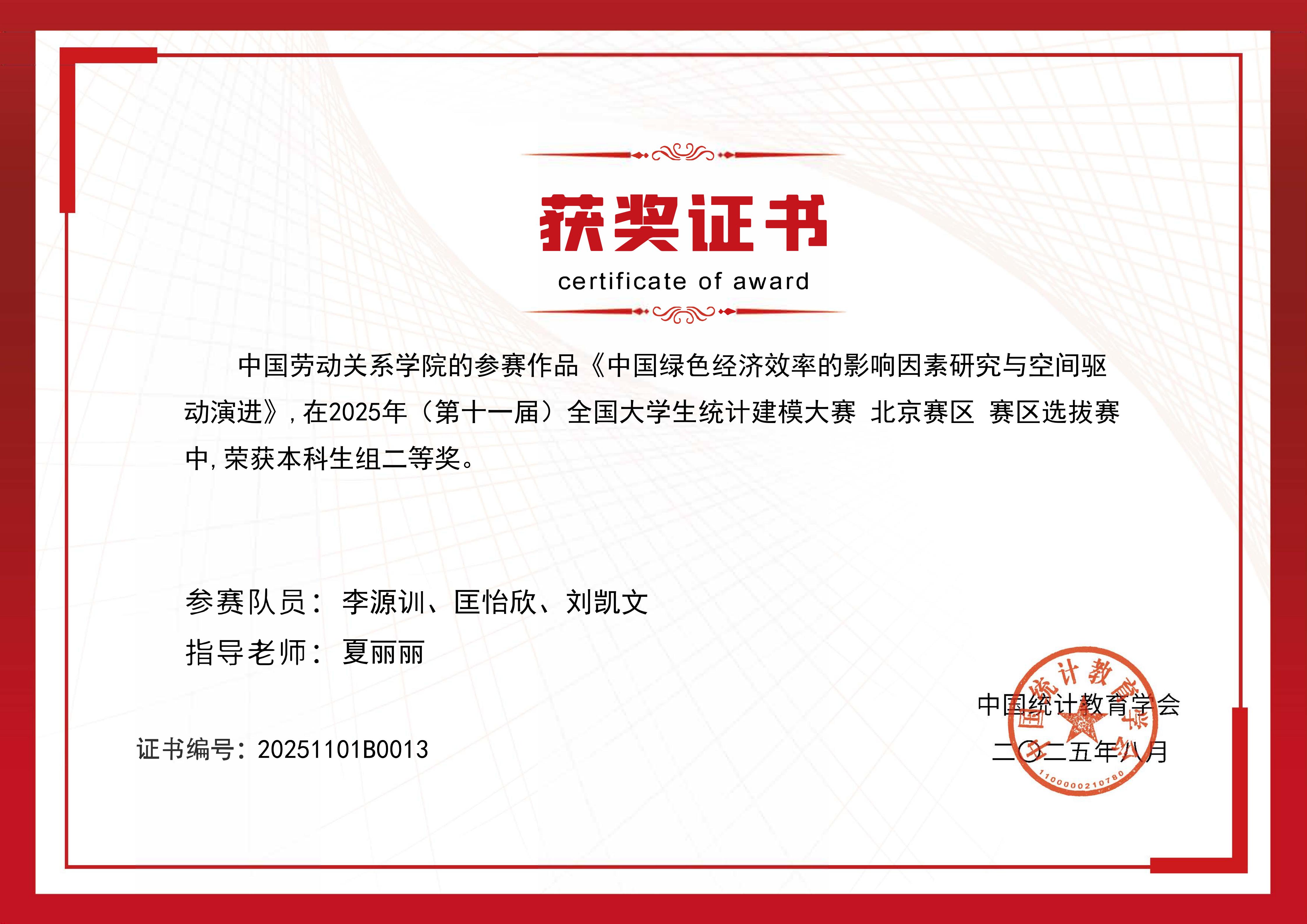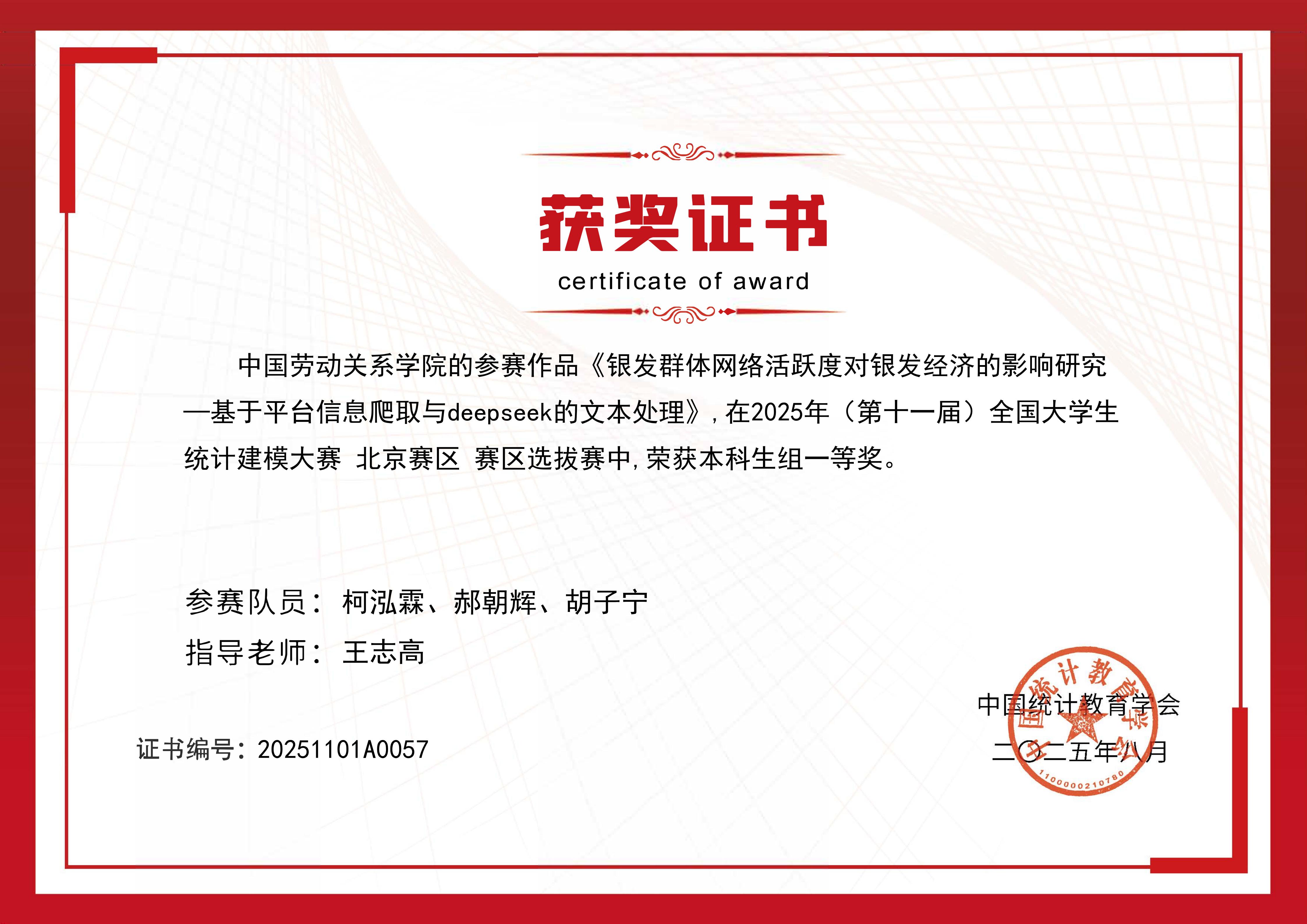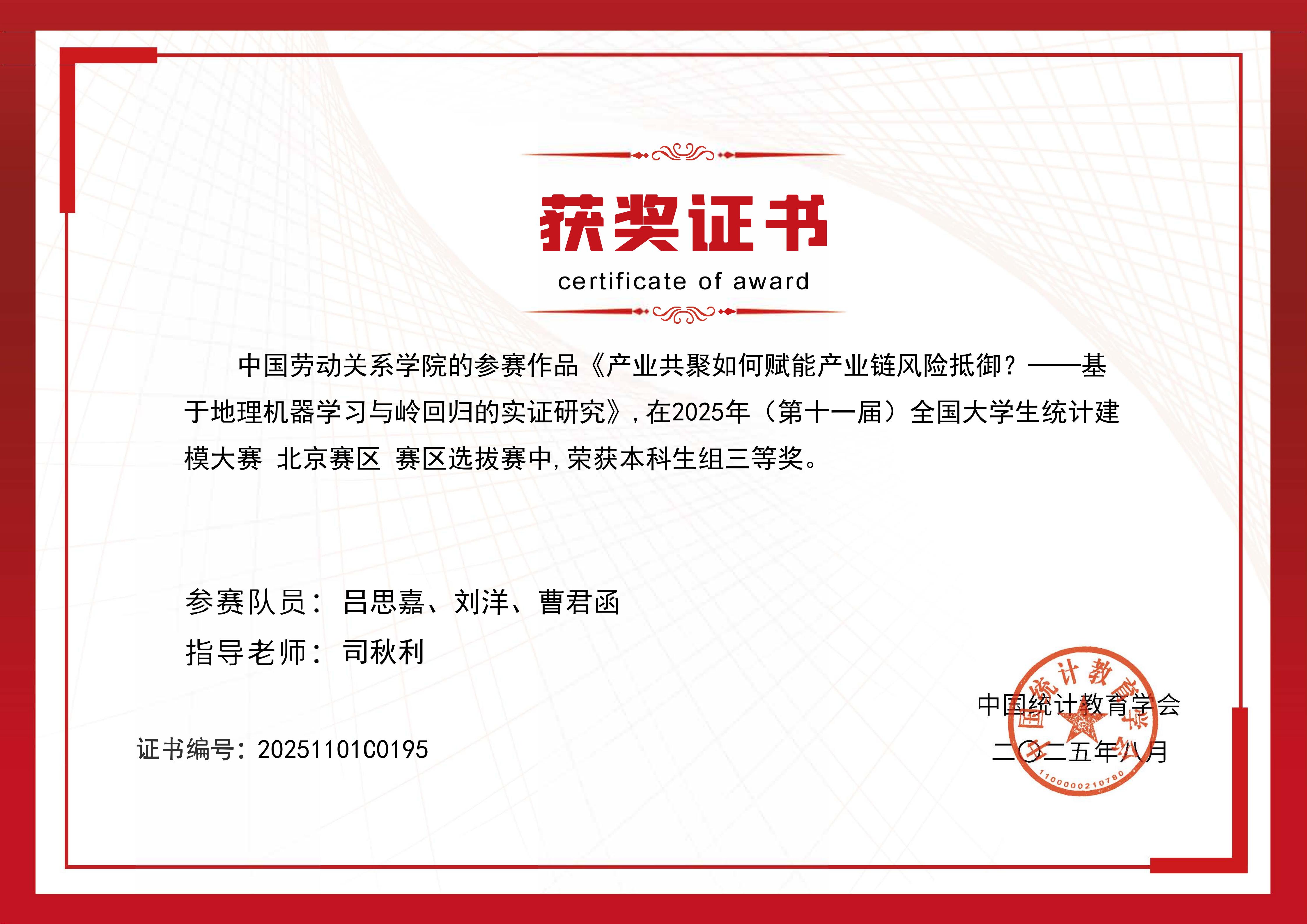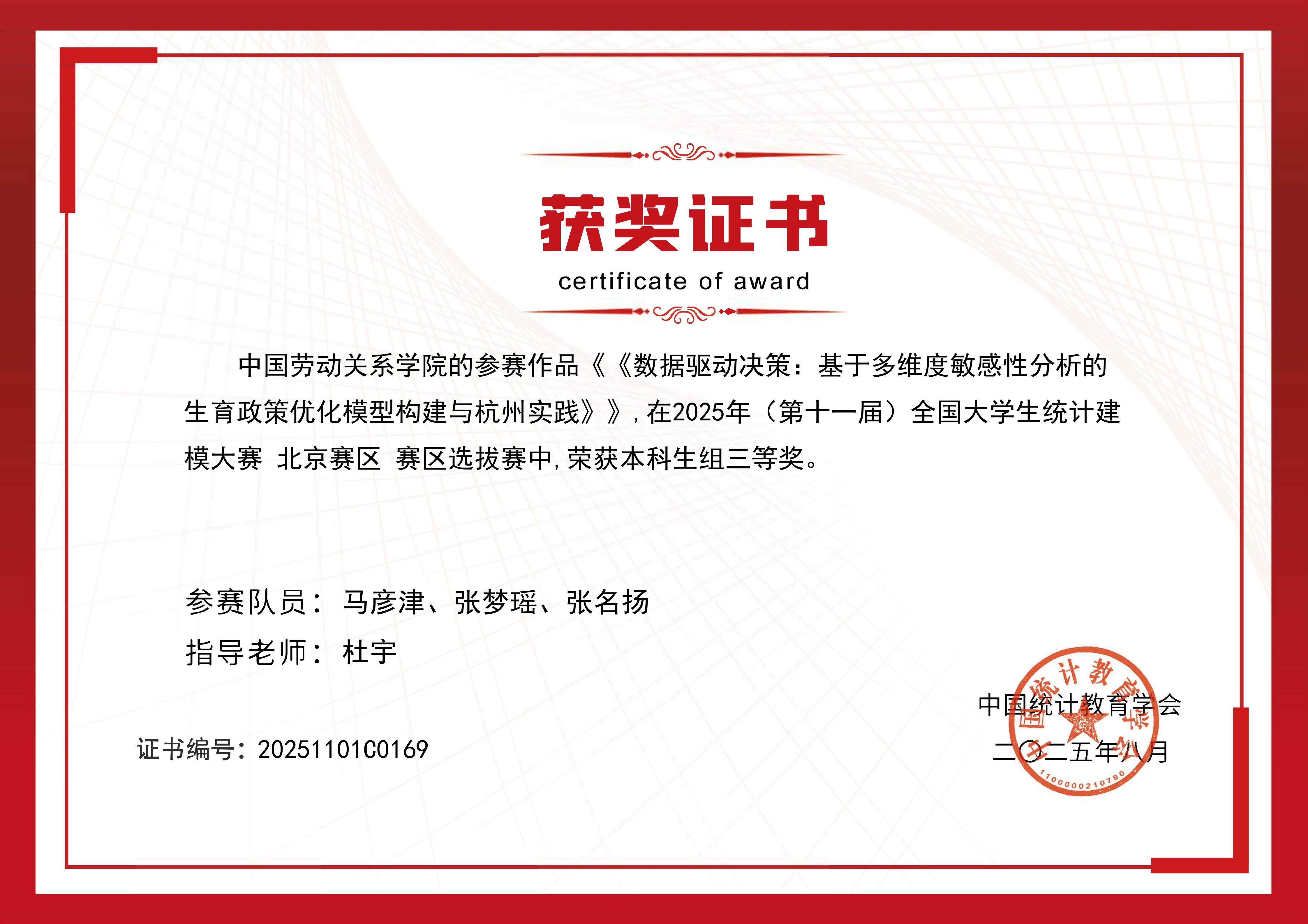 我校学生在2025年全国大学生统计建模大赛中喜获佳绩 - 中国劳动关系学院新闻网