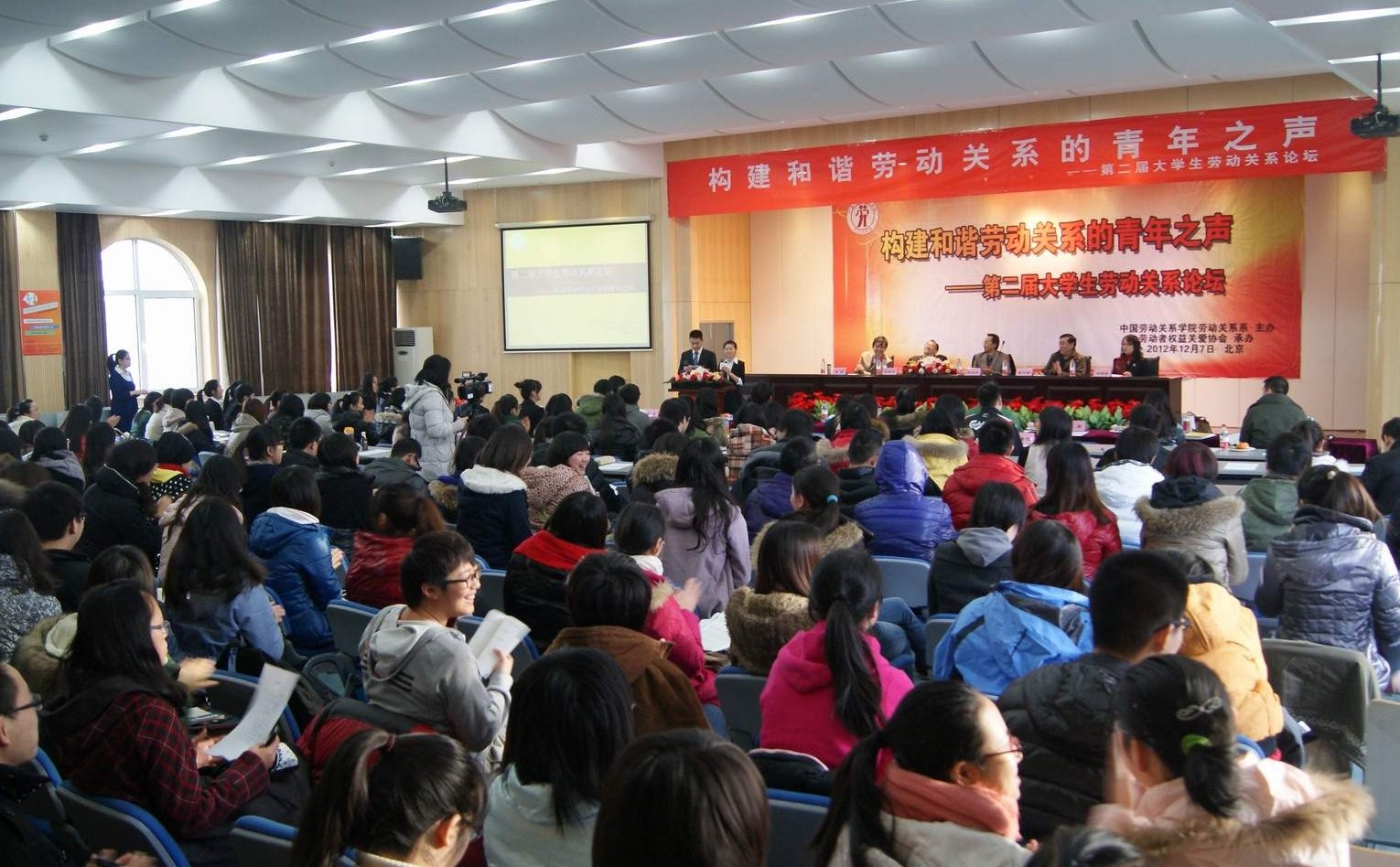 为培养学生科研能力,促进人才培养质量的提升,2012年12月7日,由劳动关系系主办的“构建和谐劳动关系的青年之声——第二届大学生劳动关系论坛”在中国劳动关系学院隆重举行。来自院内外的200多名师生汇聚一堂,共襄盛举。