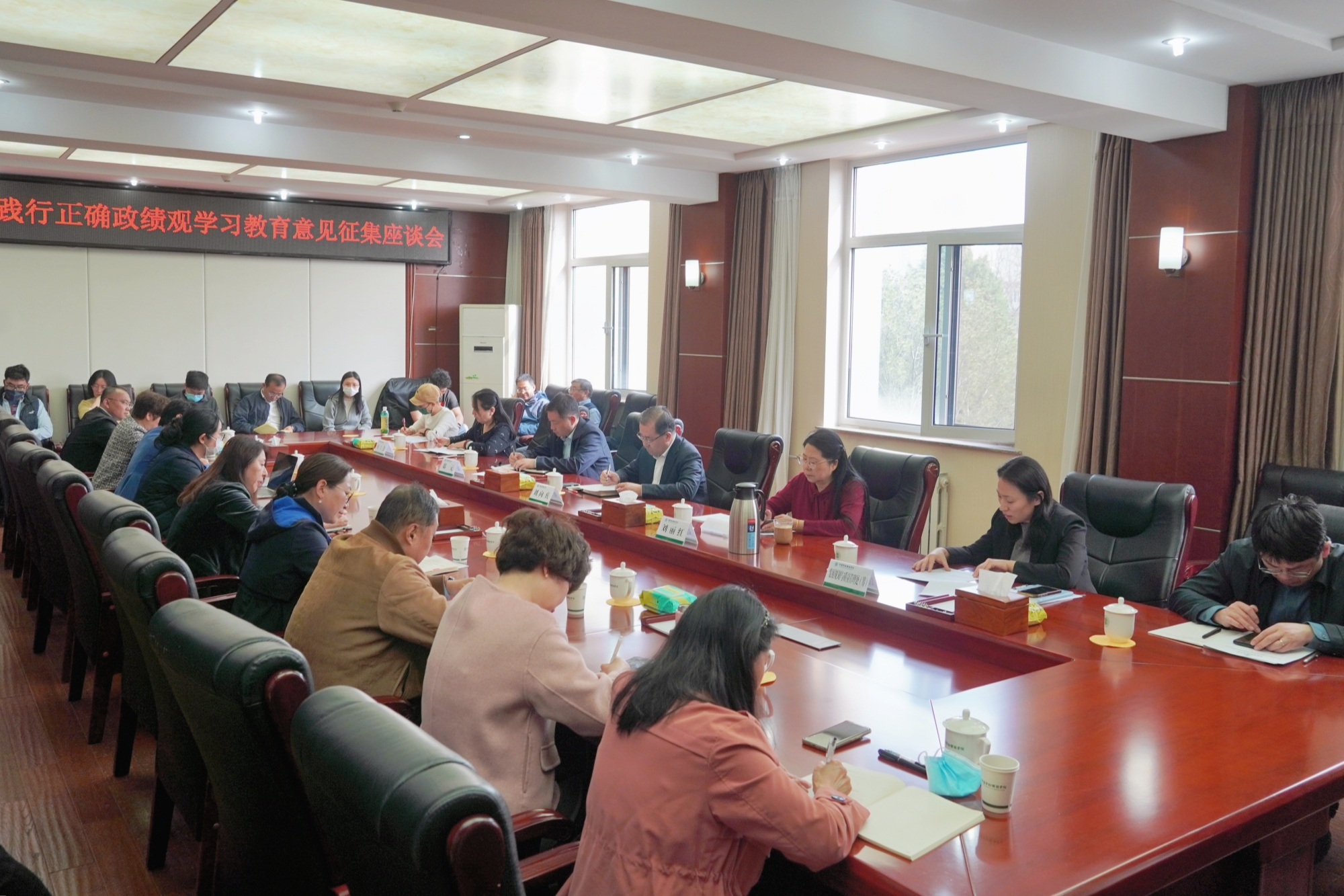 3月26日下午,学校树立和践行正确政绩观学习教育教职工座谈会在北京校区唯实楼408会议室召开。会议深入贯彻落实学校树立和践行正确政绩观学习教育实施方案,广泛听取教职工意见建议,推动学习教育走深走实。党委书记刘向兵,党委常委、副校长、工会主席刘丽红,党委副书记、纪委书记邸元出席会议。来自各学院、各部门的教职工代表、工会会员代表共计26人应邀参会,学习教育工作专班办公室相关同志列席会议。
