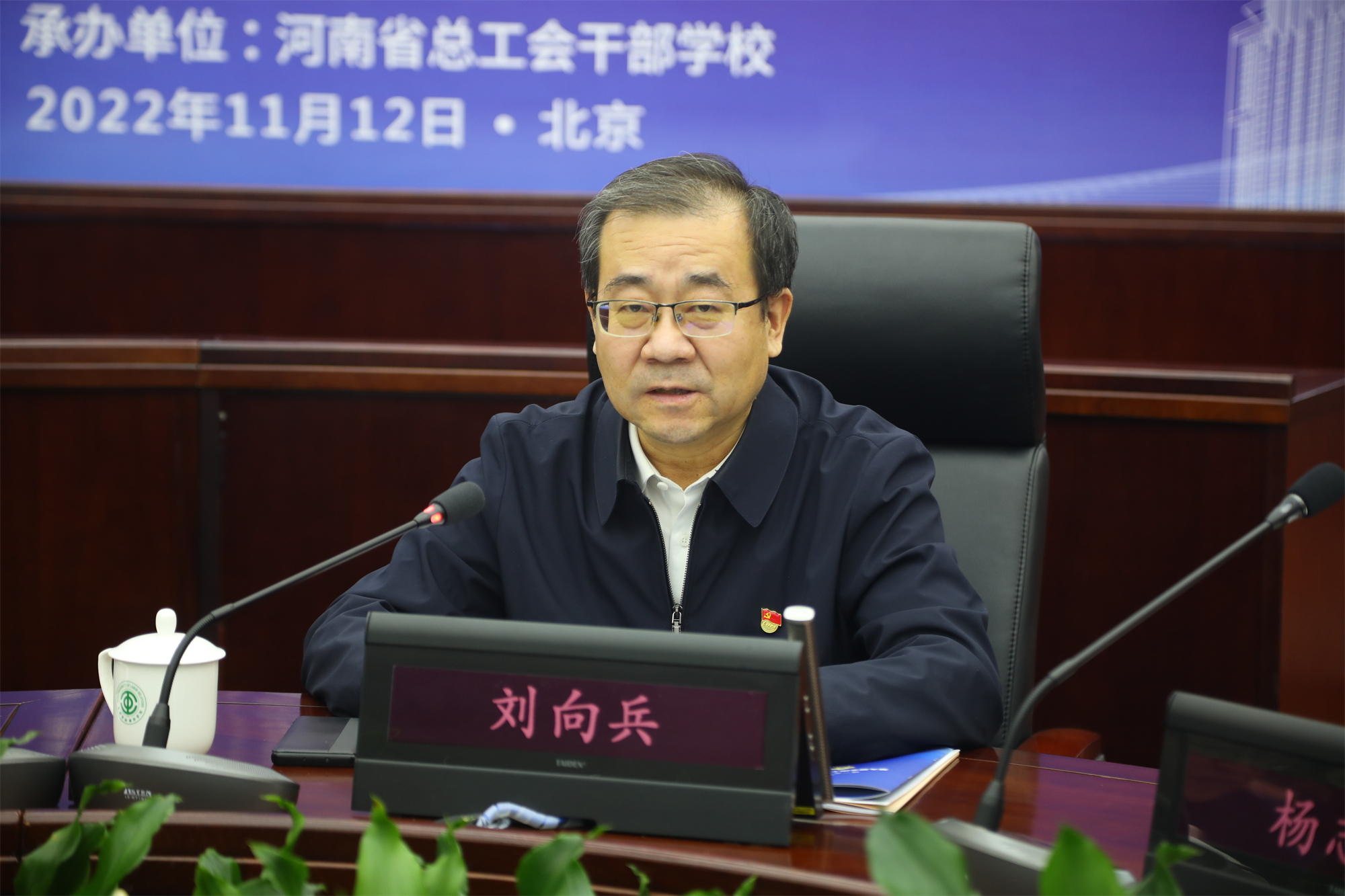 11月12日下午,由我校与河南省总工会干部学校联合主办的第九届全国工会干部教育培训工作交流研讨会,以线上线下相结合的方式在我校致远楼808报告厅召开。全总组织部副部长肖培波、我校党委书记刘向兵出席研讨会。来自全国28家省级工会院校、5所教育基地的主要负责人及我校工会学院、工会干部培训学院全体教师近70余人参加研讨会。