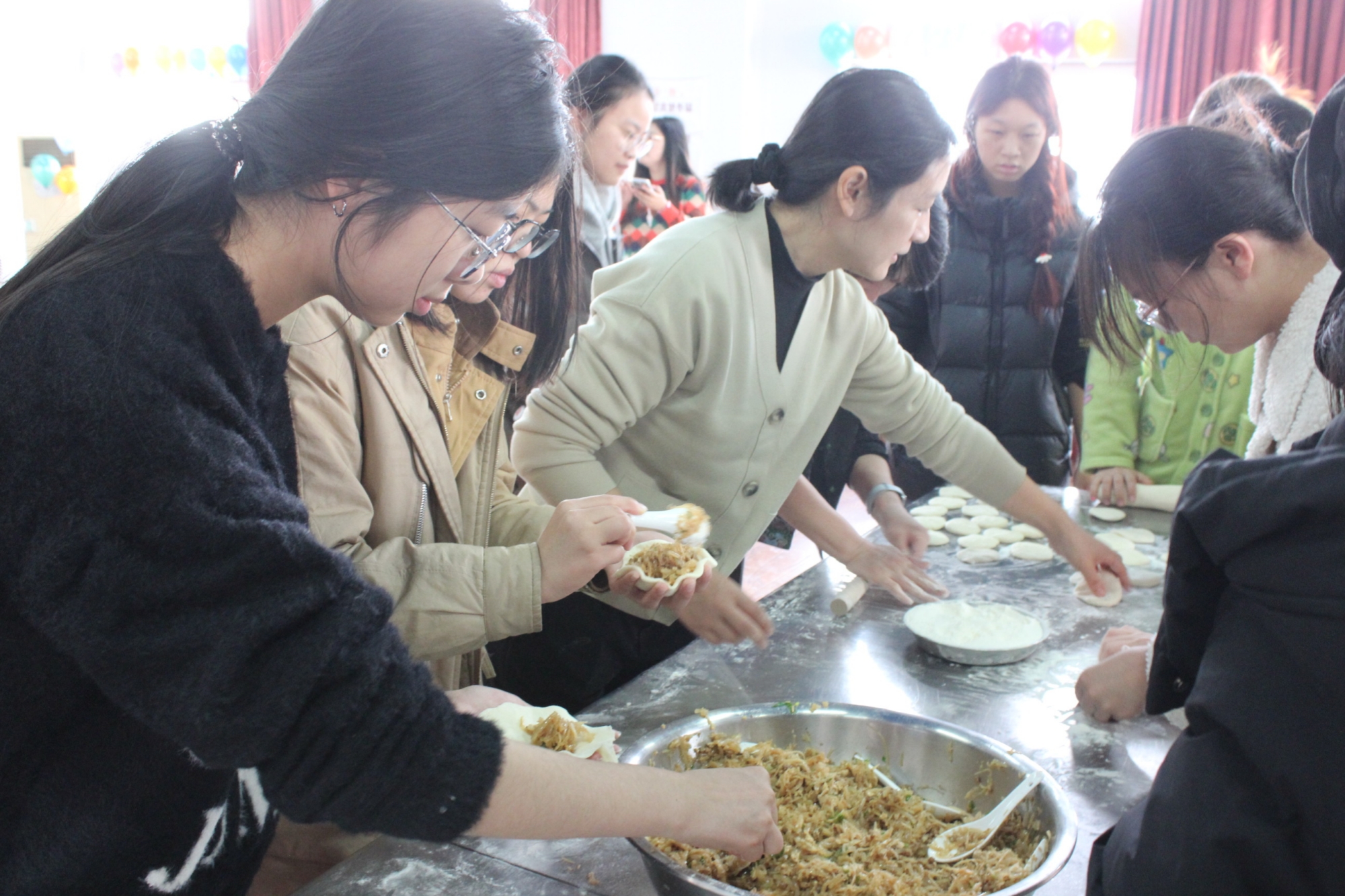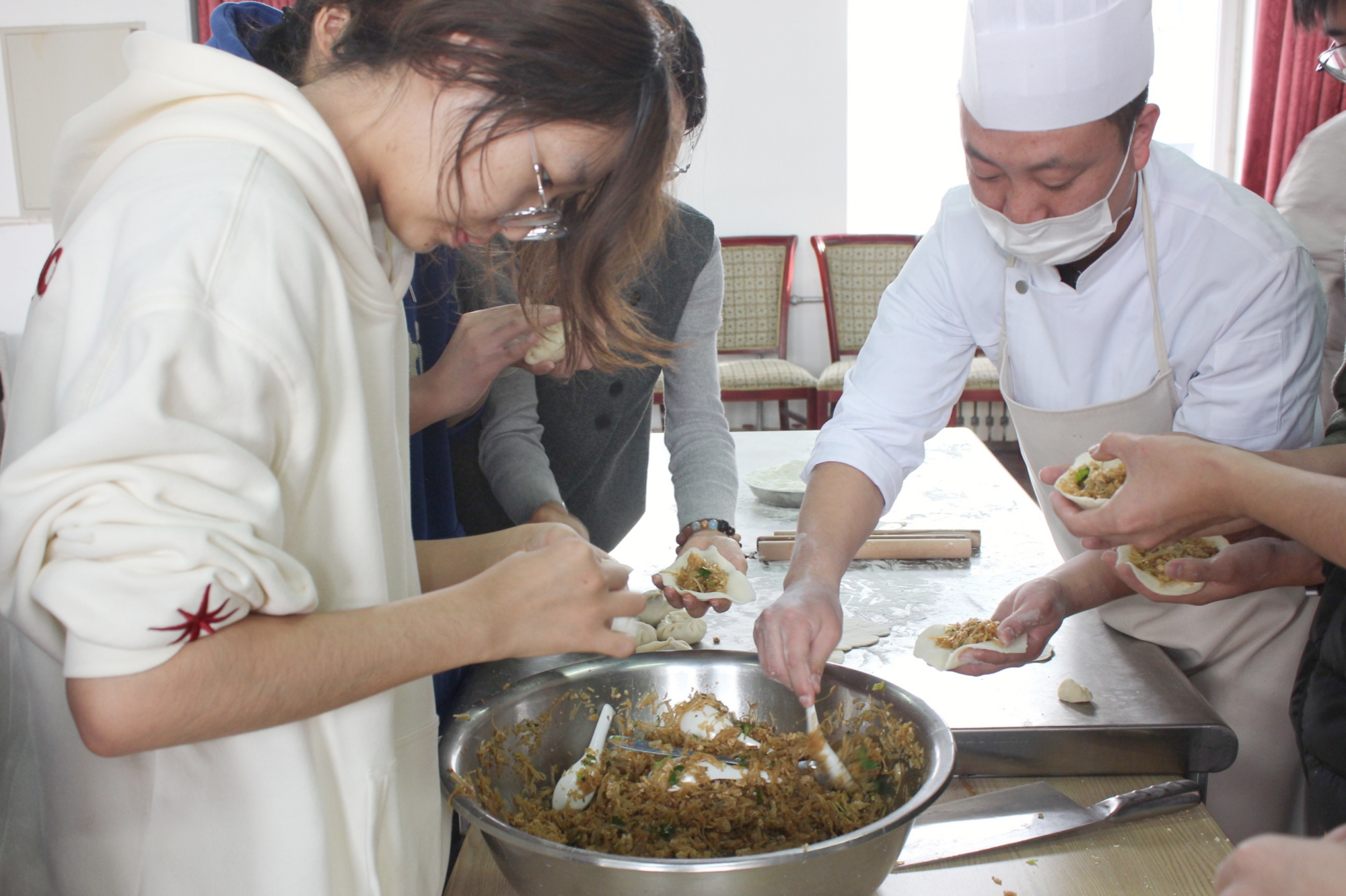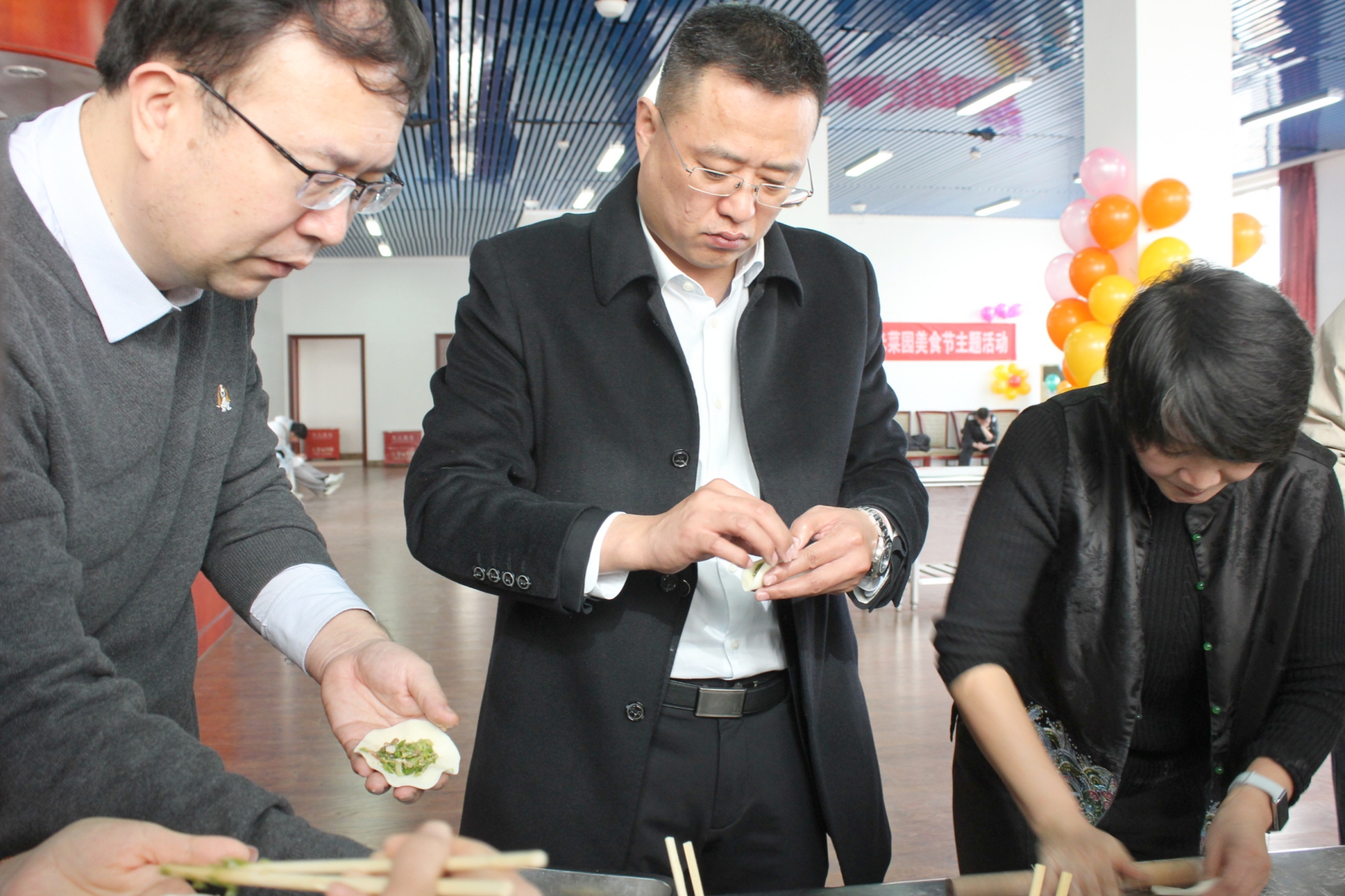 11月30日上午,在涿州校区教工餐厅,师生们通力合作,进行食材清洗、备馅、和面等准备工作,将采收的白菜、萝卜加工成包子、饺子、羹汤等美味佳肴。李珂与师生们共同品尝亲手制作的美食,共享劳动成果。他充分肯定了同学们在耕读小院管养中展现出的劳动精神,并希望劳动教育学院与后勤管理处持续深化合作,进一步加强活动的教育性设计,将其打造为既服务于劳动教育专业人才培养,又面向全校学生的劳动教育实践教学品牌。