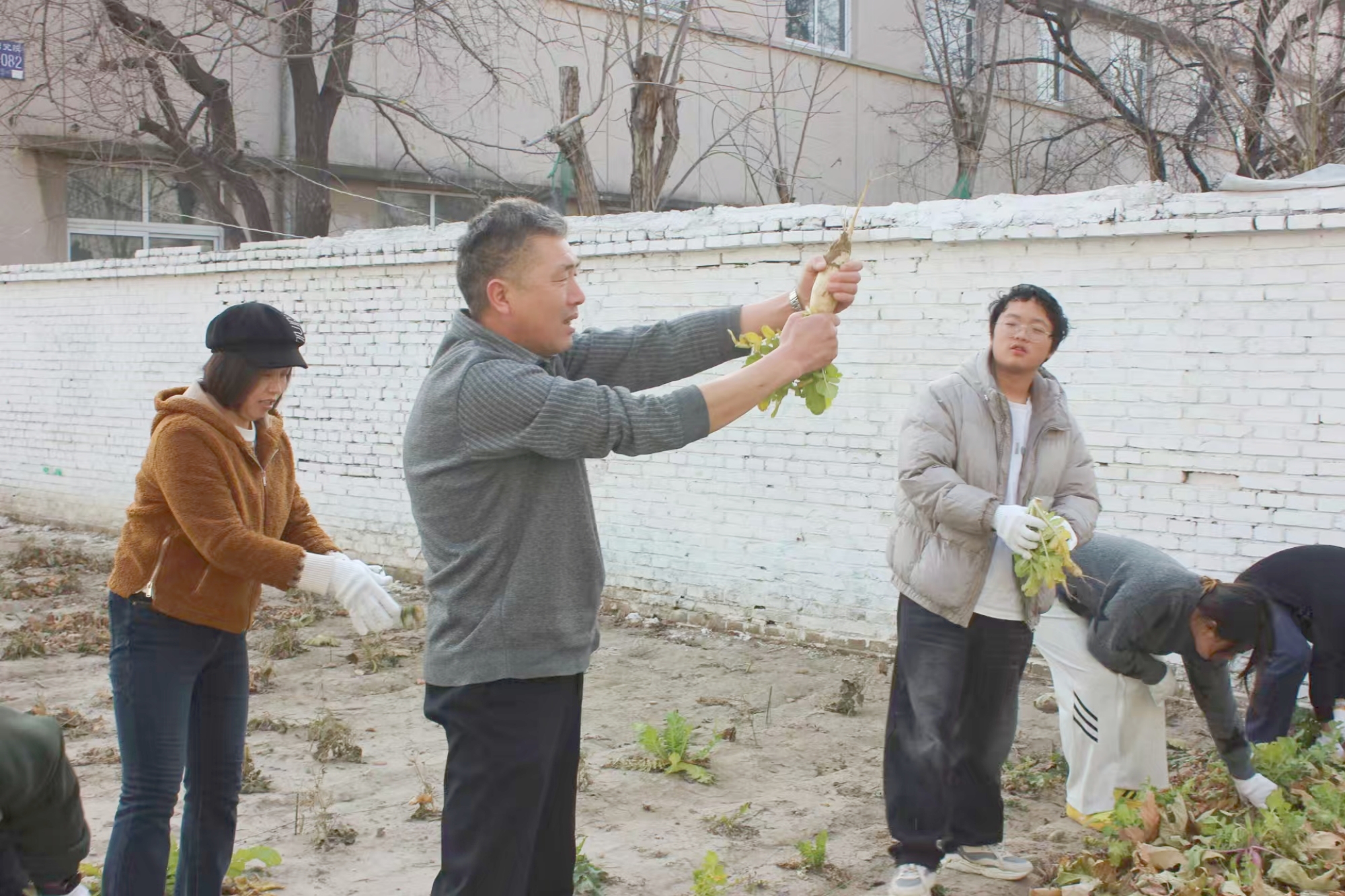 11月28日下午,“丰收·美食节”拉开帷幕。李东主任、后勤管理处老师及全校 53 名“一米菜园”认领学生,共同采收了历经一学期精心管护的劳动成果。众人将新鲜的萝卜、白菜等作物细致整理后,有序捐赠至涿州校区教工餐厅,让耕耘收获的温暖传递至校园餐桌。