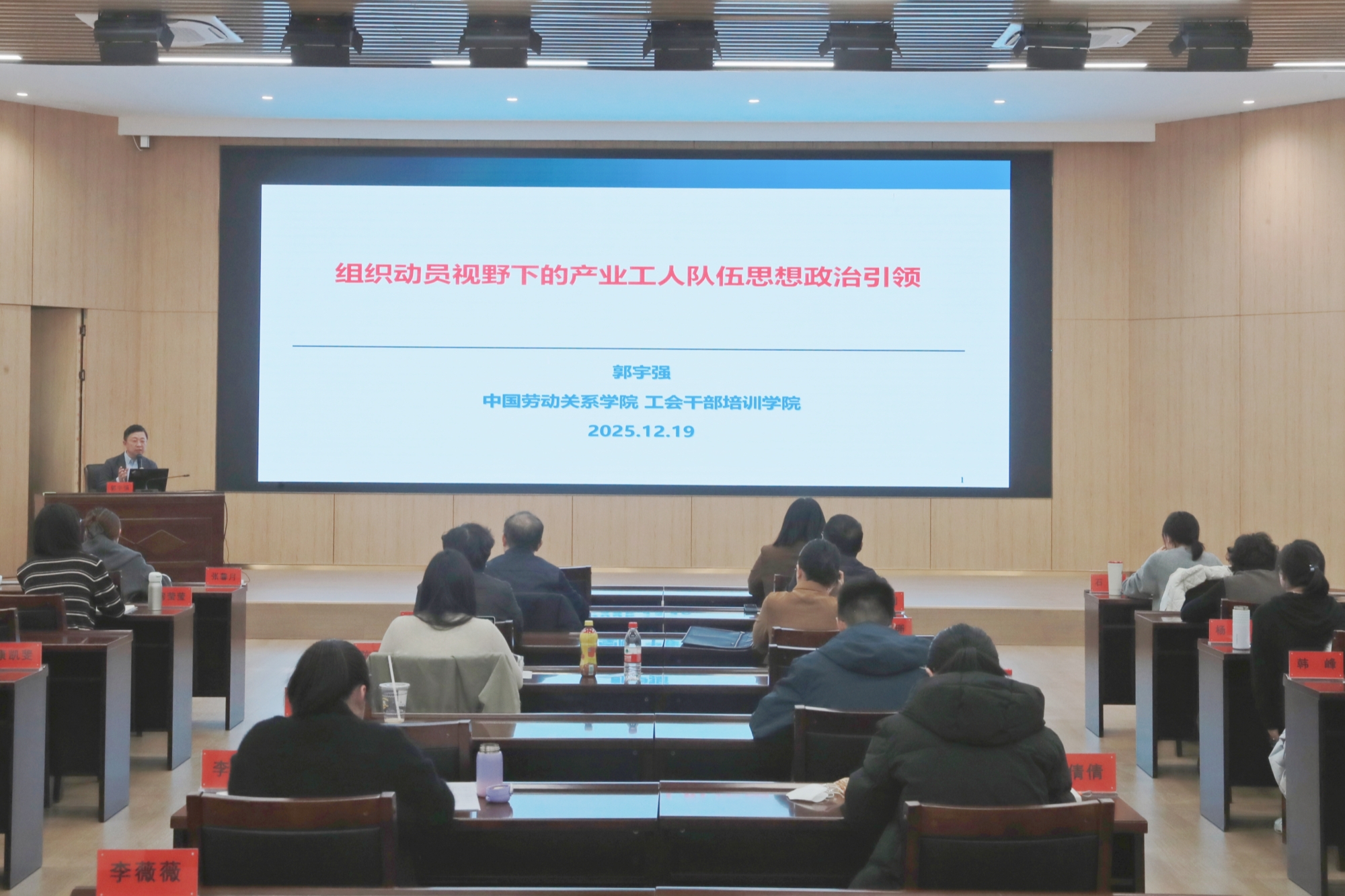 12月14日至20日,由我校主办的全国工会干部院校教师“职工思想政治引领”教学能力促进培训班在河南省三门峡职工之家举办。来自全国26个省(区、市)工会干部院校、地市级工会干校及我校的40名学员参加培训。我校党委常委、工会干部培训学院党总支书记戴筱筱,三门峡市总工会党组成员、副主席韩永娟出席开班式。