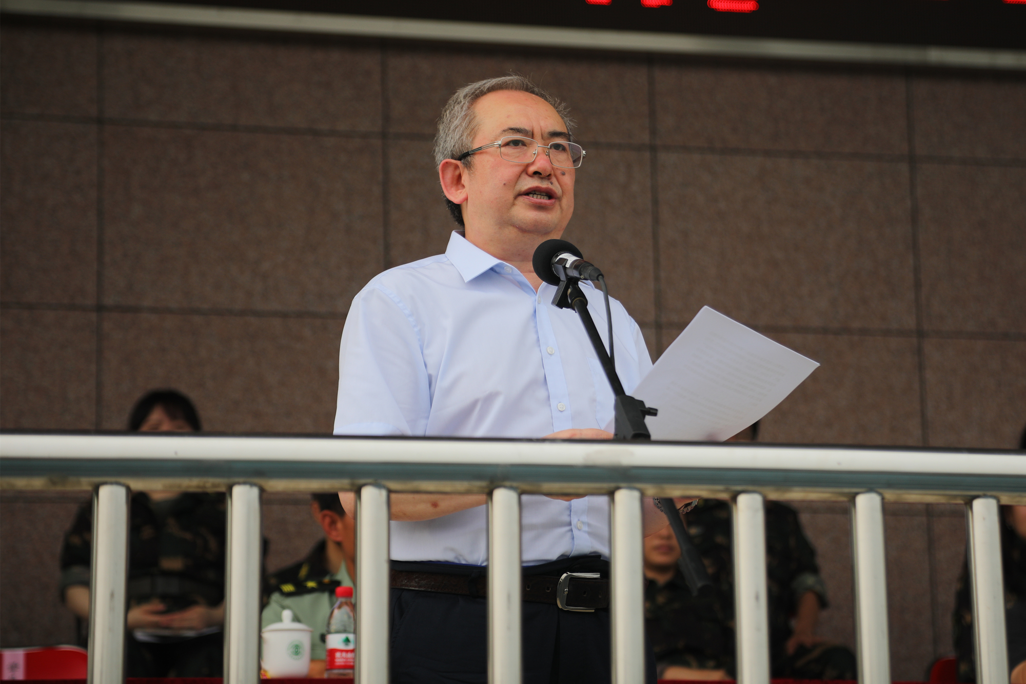 傅德印校长在讲话中指出,军训是高校按照国防教育的要求,认真学习贯彻习近平总书记强军思想及国家总体安全观,落实国家人才培养战略的重要举措和有效手段,是对学生开展爱国主义和国防教育的重要途径。他对参训学生提出三点要求:一是要培养勇敢坚定、坚忍不拔的毅力;二是要树立团队协作、遵守规则的意识;三是要养成锻炼身体、健康作息的习惯。他还勉励同学们,要以饱满的热情、昂扬的精神投入训练,尊重教官、听从指挥,团结互助、拼搏进取,展现出青年人特有的朝气和风采,以优异的成绩庆祝建党百年。