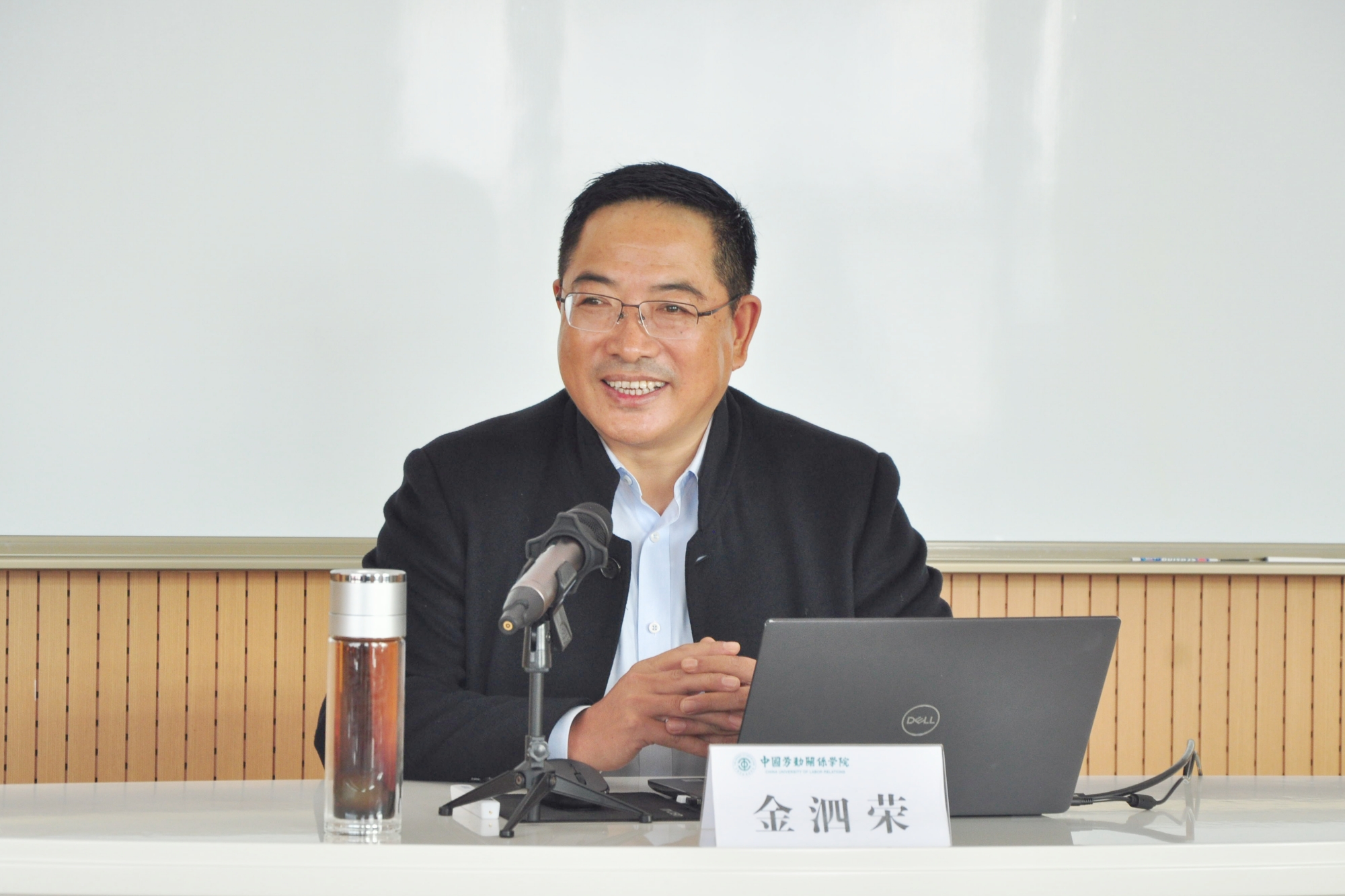 刘向兵代表学校对金泗荣表示热烈欢迎和衷心感谢,并指出,三门峡水利枢纽工程是在黄河惊涛骇浪中开辟的伟大工程,不仅开创了治理黄河水患、开发黄河资源的人间奇迹,更承载着中华儿女自强不息、坚韧不拔的民族精神,生动彰显了中国共产党领导下的工人阶级信念坚定、无私奉献、不畏艰难、勇于担当、坚韧不拔、奋发图强的优秀品格。他提到,近期学校已与三门峡市总工会签署战略合作协议,此次“思政大讲堂”正是双方深化合作,将黄河历史文化、枢纽工程文化、河流生态文化等大思政课内容引入学校思政课建设的有效举措,对推进“中国工人大思政课”和学生思政工作,丰富学校思政内涵、提升师生精神境界具有重要意义。