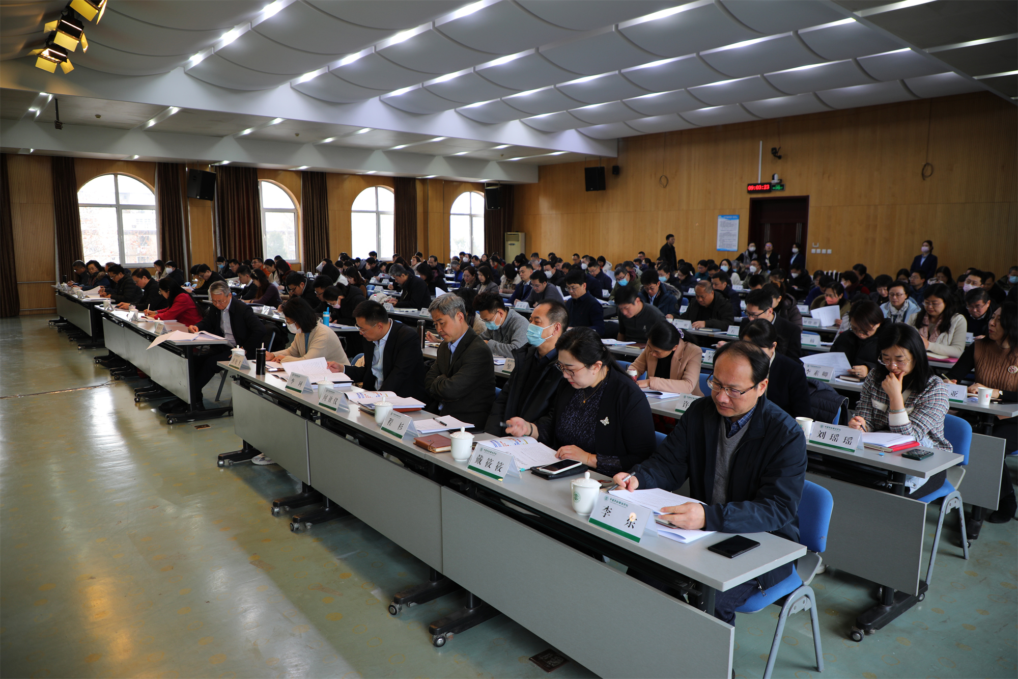 全体中层干部、副高职称(含)以上教职工共150余人参加会议。