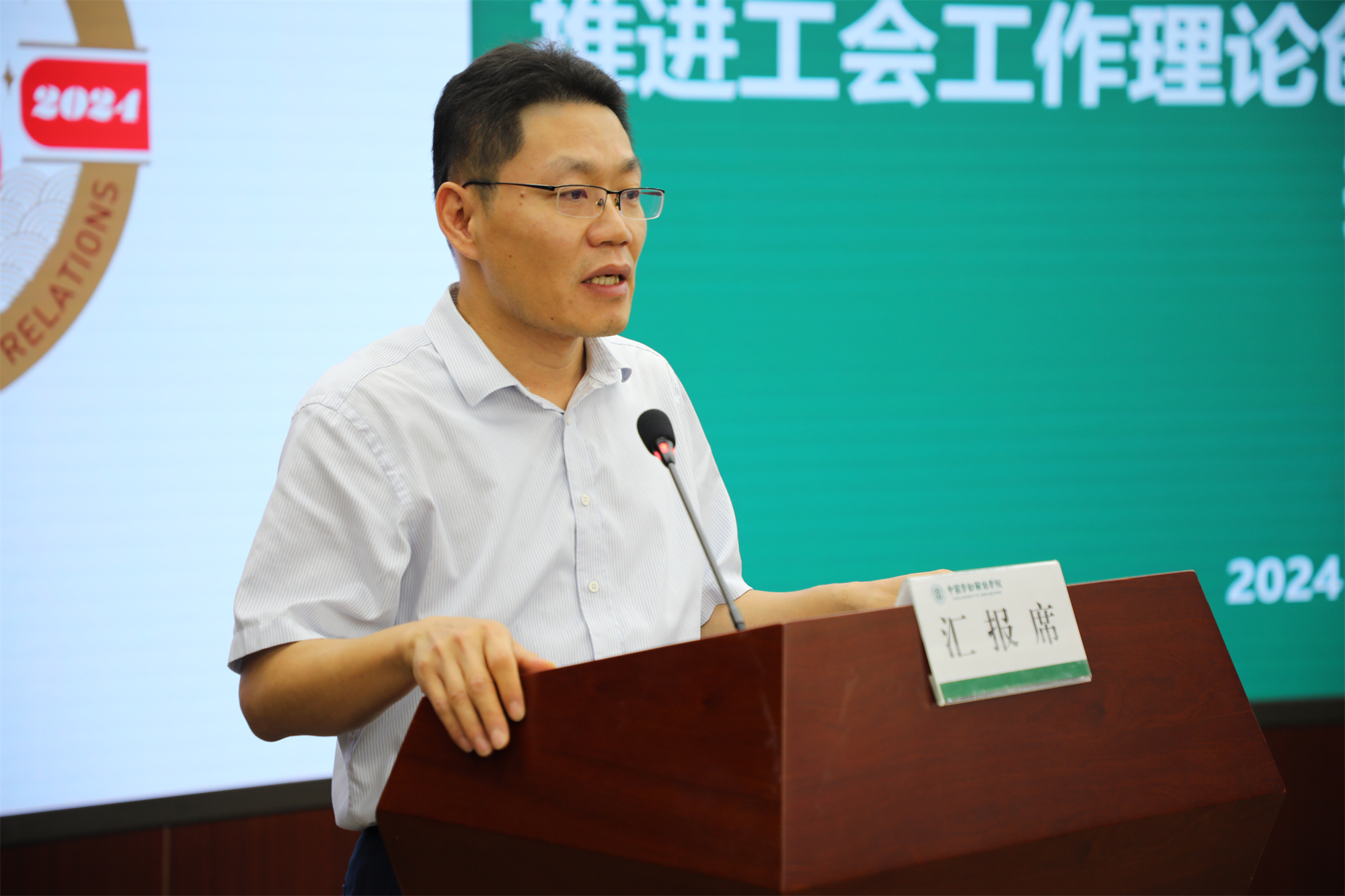 会上,闻效仪部长传达了徐留平书记9月4日在学校专题汇报会上的讲话精神。创新案例学理化研究汇报与交流环节,计算机学院院长周百顺作《创新案例工作数智化》报告,工会学院副院长李妍妍作《创新案例:工会工作效能提升的路径探索》报告,劳动关系与工会研究院执行院长郭宇强作《全国工会重点工作创新案例工作标准》报告。此外,来自我校马克思主义学院、劳动关系与人力资源学院、法学院、劳动经济学院、公共管理学院、安全工程学院、社会工作学院、劳动教育学院、酒店管理学院、劳模学院10个学院共15位教师,分别对2024年上半年全国工会重点工作创新案例发布会交流发言的15个典型创新案例学理化研究阶段性成果进行了汇报。