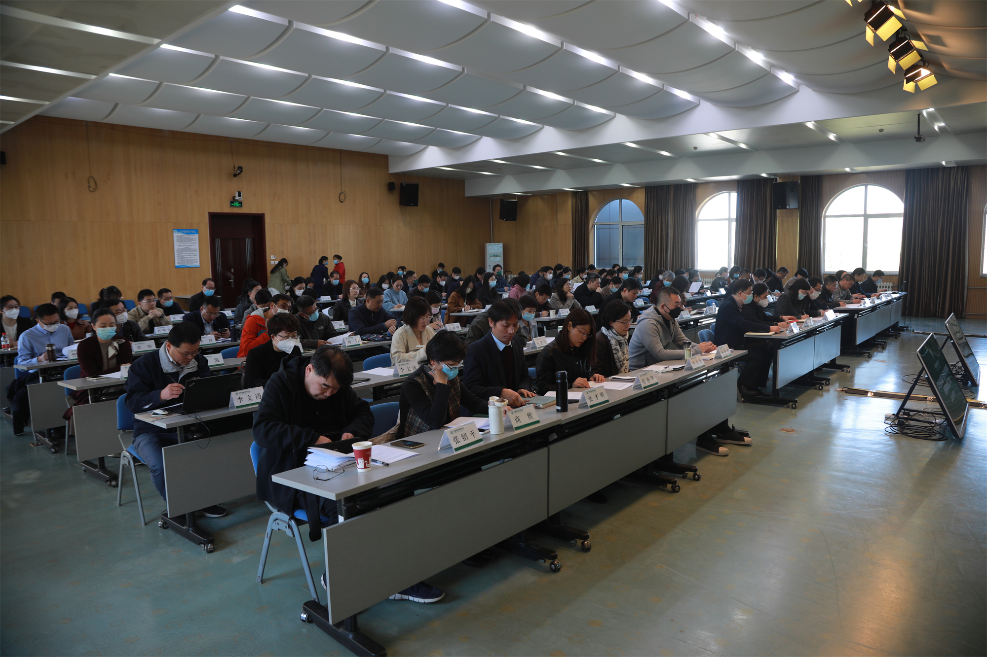 全校各学院、各部门副高以上教师和中层以上干部90余人参加会议。