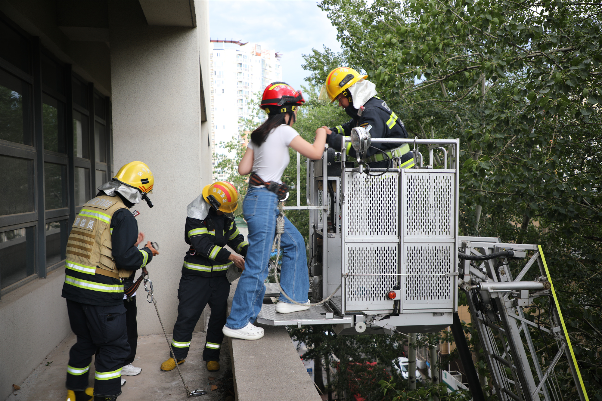 此次演练由海淀消防救援支队副支队长杨利超亲自指挥调度,海淀消防救援支队、首体南路消防救援站、五棵松特勤站、五塔寺小型站全力参与,内容丰富多样,包括高层云梯救援、高层楼梯间紧急疏散、模拟烟道穿越演练以及水炮灭火技能展示等多个环节。