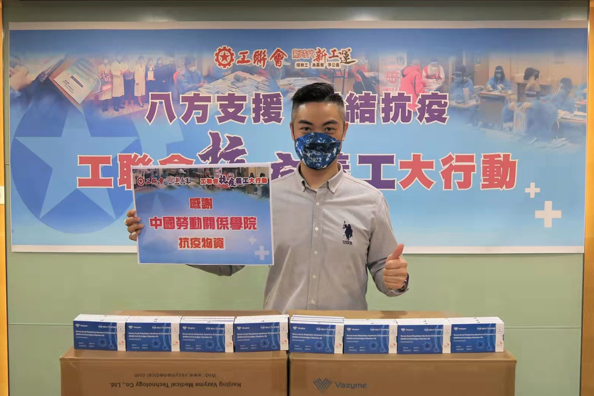 香港第五轮新冠肺炎疫情爆发以来,学校一直关注香港师生的生命安全和身体健康。为贯彻落实习近平总书记就支援香港抗疫工作的重要指示精神,助力香港工会做好疫情防控工作,支持香港师生抗击疫情、攻克难关,在中央人民政府驻香港特别行政区联络办公室和香港工会联合会(以下简称“工联会”)的大力帮助下,学校在详细了解香港师生生活、学习、工作及防疫需求后,经过周密安排、多方协调,最终委托工联会代表学校为香港硕士生、大专班学生及香港办学点香港管理学院教师在香港采购并发放20000个新冠病毒抗原检测试剂盒(以下简称“试剂盒”),送上一份来自母校的温暖与关心。