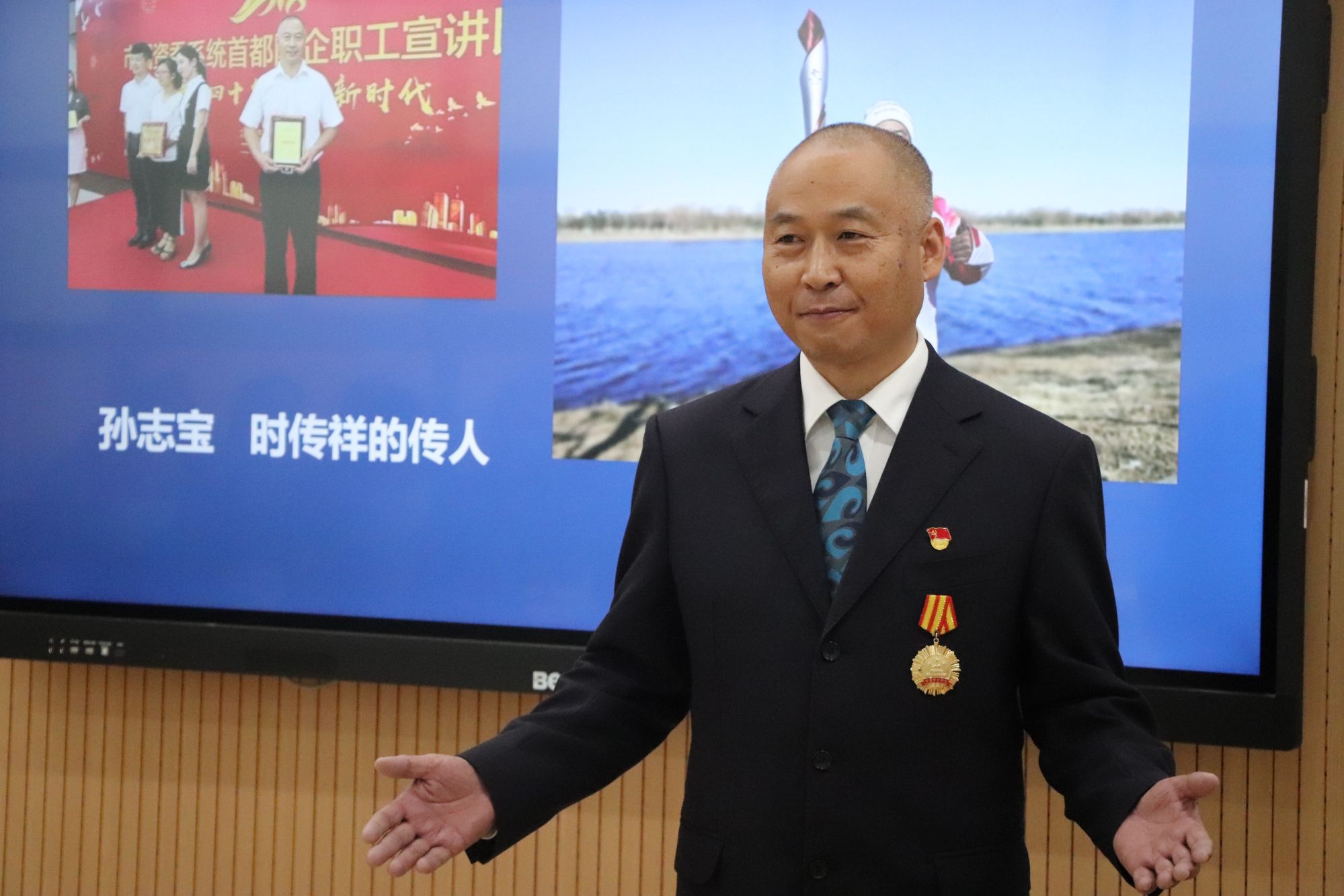 在互动环节,劳模校友孙志宝为大家带来了《做“时传祥精神”的传人》宣讲作品的展示,劳模在校生郭凯、赵培培也结合自身工作实际开展了宣讲。于老师也结合3位同学的宣讲过程进行了现场点评。