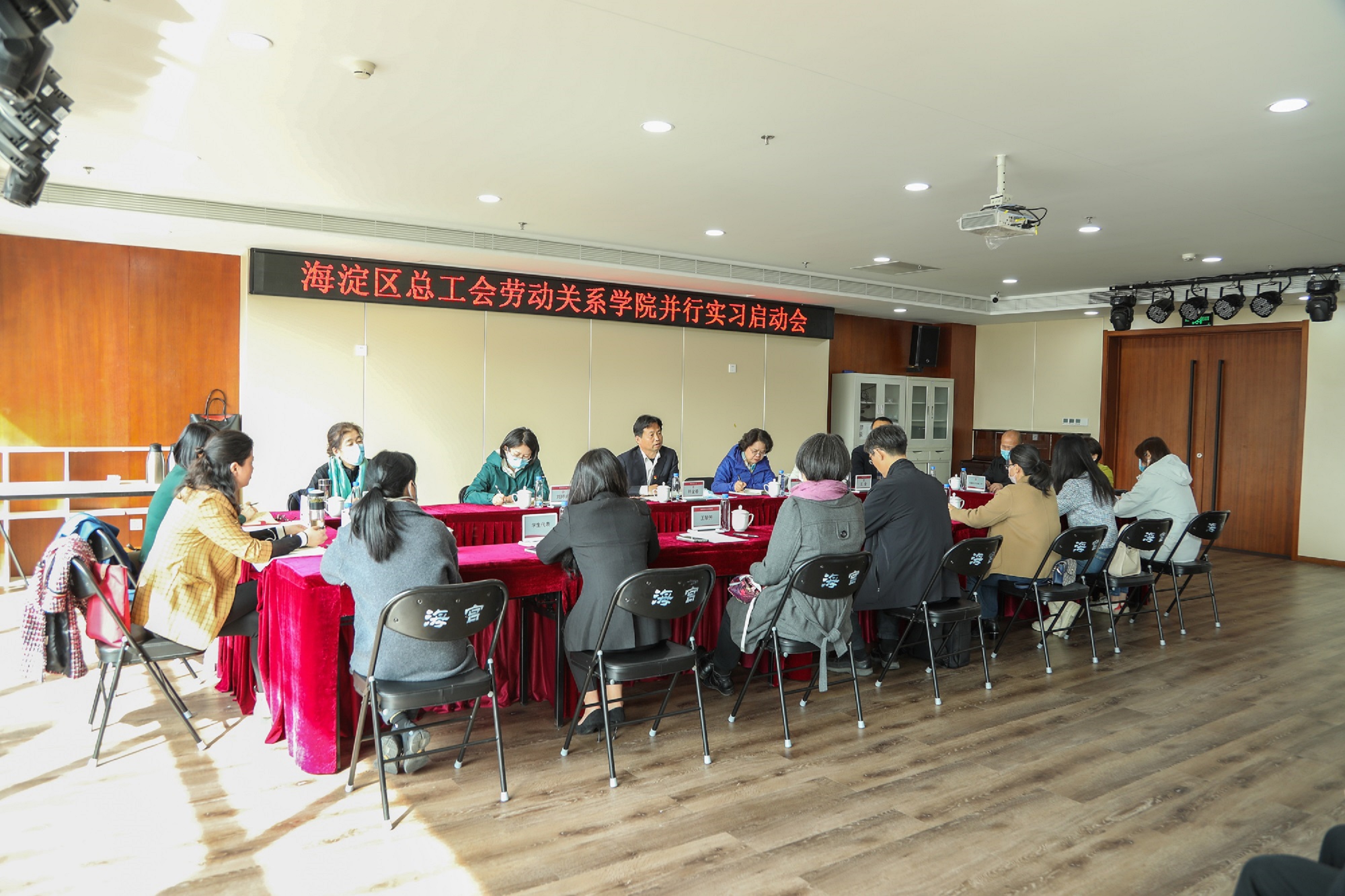 3月10日上午,海淀区总工会与我院在海淀工人文化宫二层会议室召开2023年社会工作专业本科生并行实习工作启动会。海淀区总工会党组书记、副主席孙金春、中国劳动关系学院社会工作学院执行院长叶鹏飞出席会议。海淀区总工会相关职能部门和街道工会负责同志、社会工作学院实践教学教研室主任孟宪红、教师王彬彬、社会工作系副主任王黎芳以及即将进入工会实习的18名同学参加会议。会议由海淀区总工会党组成员、副主席张寰主持。