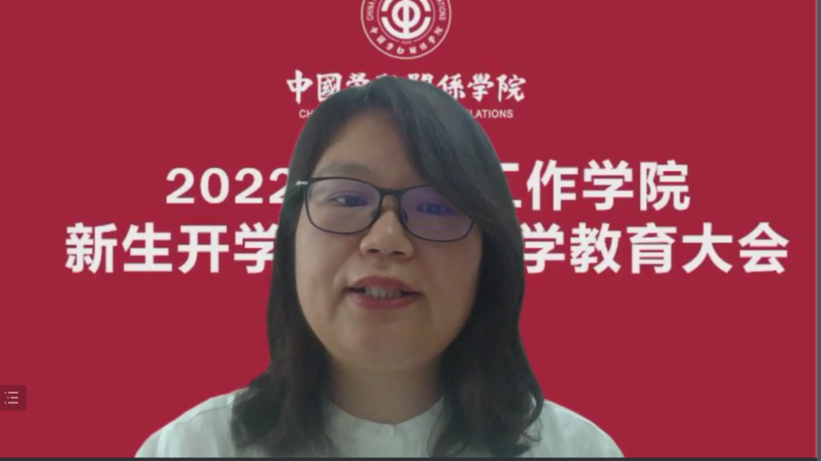 教师代表崔思凝老师也从专业学科、课程学习与校园生活这三个方面表达了自己的看法,也建议同学们在大学期间悦纳自己,迎接变化,大胆表达,勇于尝试。同样,崔老师也期望新生们在大学期间能够内化学科价值观,建立社会责任感,对个人和社会抱有情感。