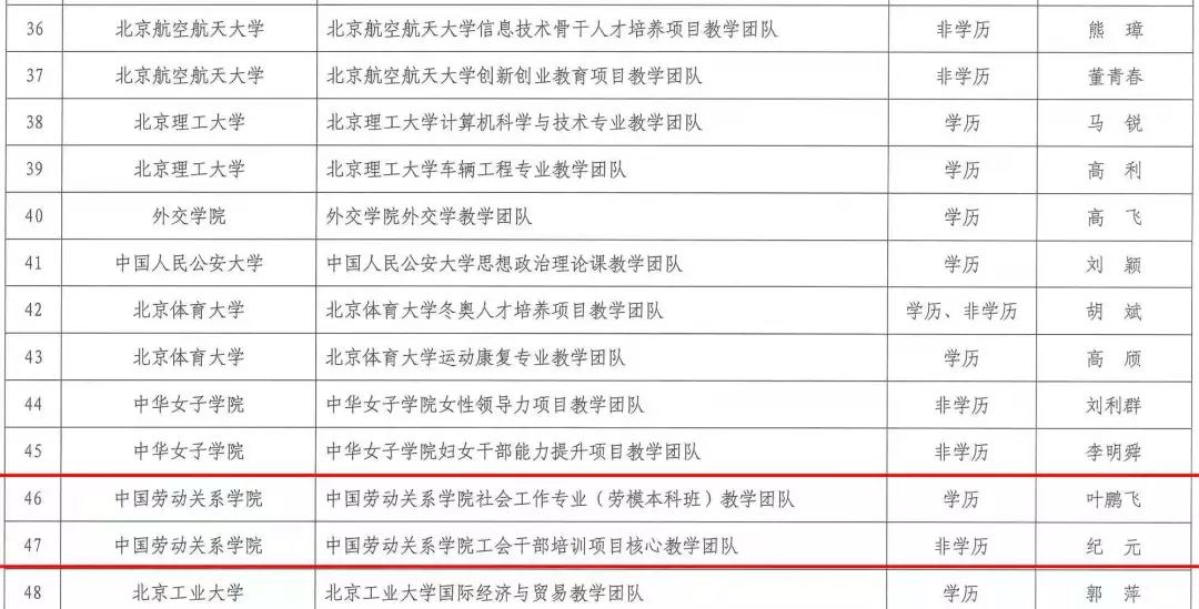 经学校推荐、专家评议、集中答辩、北京市教委审核公示等环节,我院有一个教学团队入选2019年度“北京高校继续教育高水平教学团队”。社会工作学院执行院长叶鹏飞作为团队带头人的“中国劳动关系学院社会工作专业(劳模本科班)教学团队”通过学历高水平教学团队遴选。我院社会工作专业(劳模本科班)入选2019年度“北京高校继续教育特色专业”。