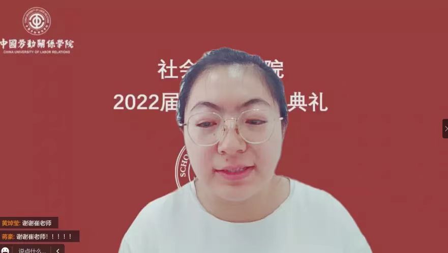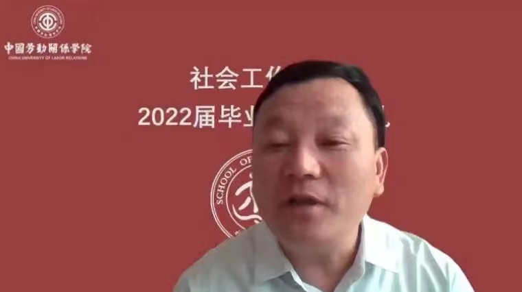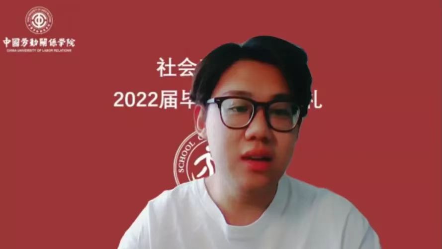 会议第二项议程,播放2022届毕业生四年大学生活的回忆纪念视频。从涿州到北京,从军训到各种各样的文体活动,无不是18级同学们在中劳、在社会工作学院的点点滴滴。