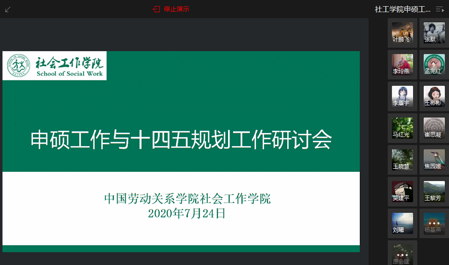 2024-12-06社会工作学院2023级本科生师生互选会12月5日,中国劳动关系学院社会工作学院于线上举行了2023级本科师生互选会,学院14位导师出席会议,教学秘书张弯弯主持会议。 -