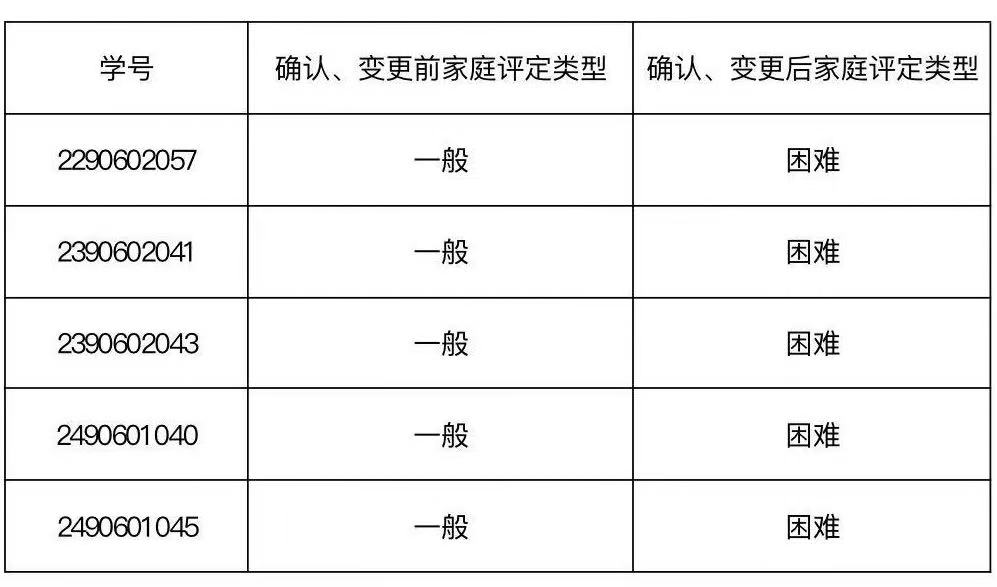 为全面准确掌握我校学生家庭经济状况,做好家庭经济困难学生资助工作,根据《教育部等六部门关于做好家庭经济困难学生认定工作的指导意见》相关要求,现对我院2025年秋季学期22级、23级、24级学生家庭经济情况调查认定等级变更情况进行公示: