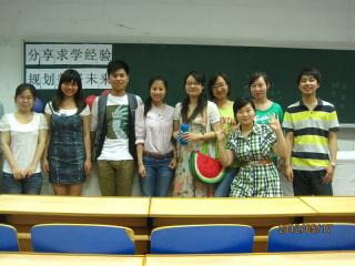 此次交流会邀请到了08级6名已成功考取国内研究生的同学和2名成功考取国外研究生的同学。8位同学主要就如何择校、复习计划、考研心态、复试以及调剂技巧等几个方面谈了自己的感受,其中出国的同学突出介绍了学习外语的方法及心得,现场同学积极参与互动,并在会后将自己复习过程中遇到的细节问题与学长、学姐进行交流。