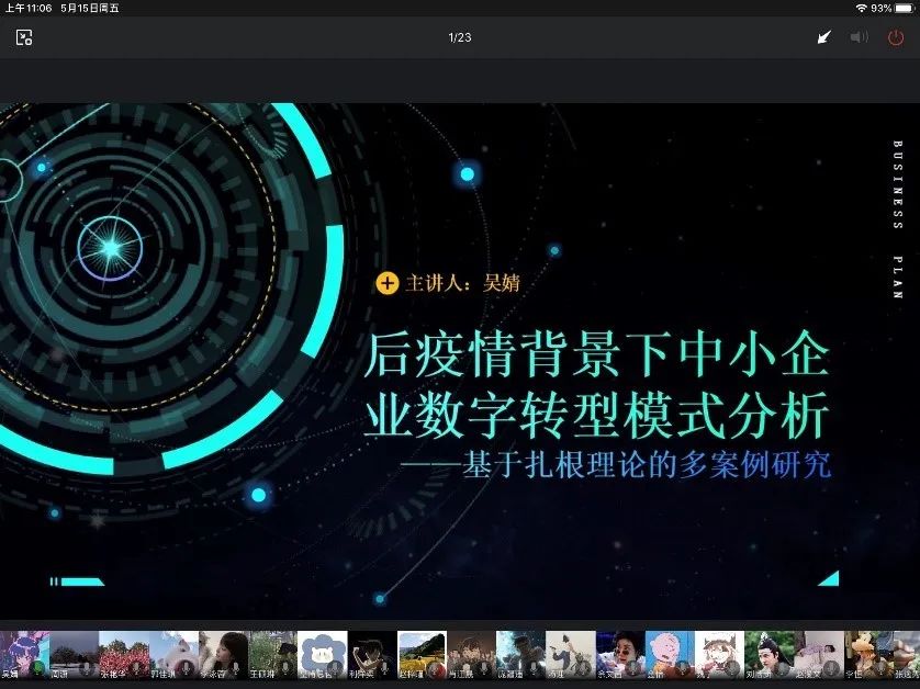 线上交流展示活动于5月15日上午10:00以线上视频会议形式进行,由19级人力一班李泳蓉同学主持,出席本次线上交流展示的评委老师有:张艳华老师,初浩楠老师,周潇老师,王潇老师,胡楠老师,共五位老师。