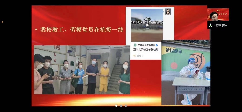 紧接着,李淑玲老师以网络实例与现实例子相结合的方式,向我们展现了疫情当中,中国共产党员不怕辛苦,冲锋在前的伟大精神。李老师告诉学员们,北京校区劳模主动报名核酸采集志愿者,不畏酷暑,身着防护服,为同学们的安全保驾护航。学员们深受鼓舞,纷纷表示自己也要向劳模志愿者学习,全心全意为人民服务。