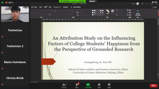 李广盛同学:北京时间6月23日23:00~24日00:30,分享了《扎根研究视域下大学生幸福感影响因素的归因研究》,本研究选定运用扎根理论的研究方法基于归因理论对北京大学生幸福感的影响因素构建理论模型,探究大学生幸福感的影响因素。