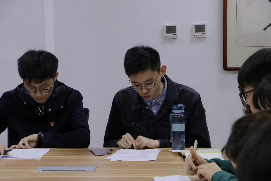 王晨老师结合十九届四中全会公报原文,从会议内容、会议精神两方面,向同学们进行了讲解和精神传达。学生预备党员李远、邵鸿飞为大家了朗读了十九届四中全会提出的“十三个坚持”与“十三个坚持与完善”,并作了领学分享。