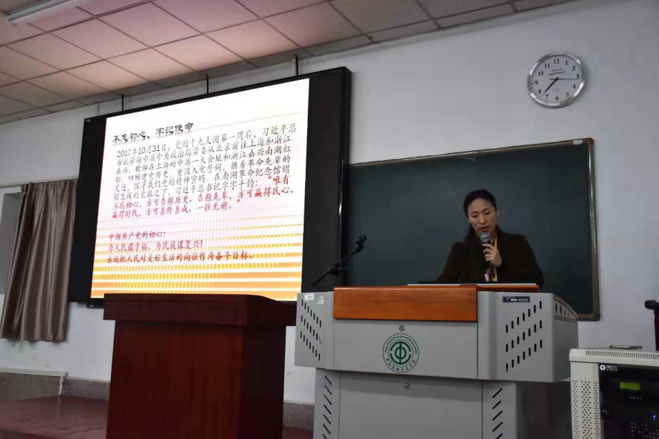 10月29日,文化传播学院第十九期学生业余党校第一次培训暨开班仪式在涿州校区阶梯二教室举行,文化传播学院党总支书记蔡月担任主讲,团总支书记王晨出席大会,2018级、2019级党课学员参与培训。蔡月书记从党史讲起,为同学们梳理党的辉煌历史,同学们深受感染,对党有了更深刻的认知。同时,蔡月书记以“两个一百年”奋斗目标为出发点,引导同学思考自己与时代的联系,争取做到“不忘初心,牢记使命”。