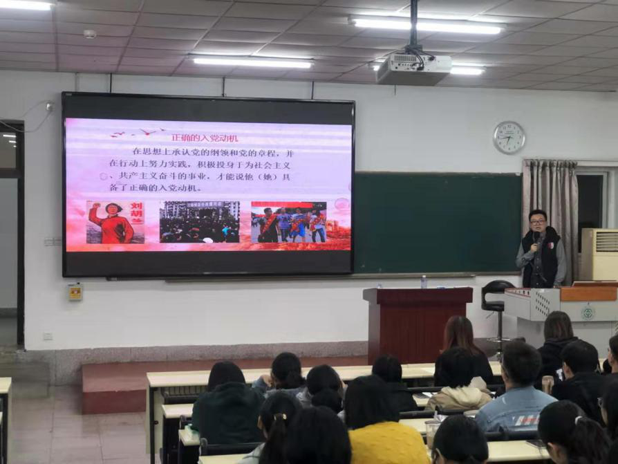 11月6日,第二次培训在涿州校区阶梯三教室举行,王晨老师就上次党课培训中“学习党史的重要意义”进行复习回忆,引入党史的发展脉络。接着抛出了“为什么要入党?”这一问题,使同学们树立正确的入党动机。阐述了申请入党的四个基本条件、入党流程、党员档案资料等。借用黄大年的感人案例,彰显了一名共产党员的爱国精神和崇高品格。在结尾之际,王晨老师提倡同学们多方面了解党课,希望在党课结业考试时取得好成绩,争取成为优秀的共产党员。