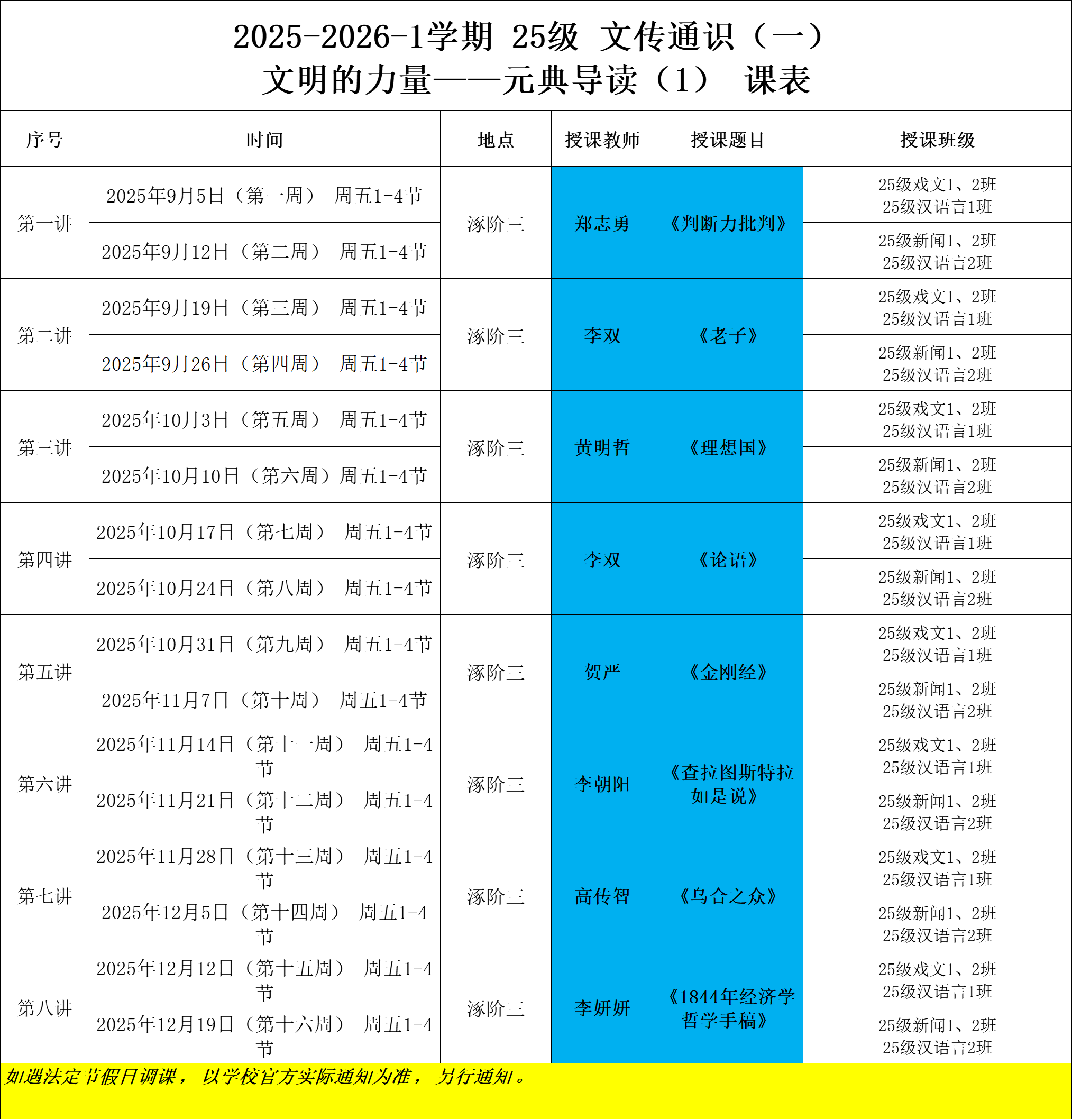 2025-2026年秋季学期文传通识课课表