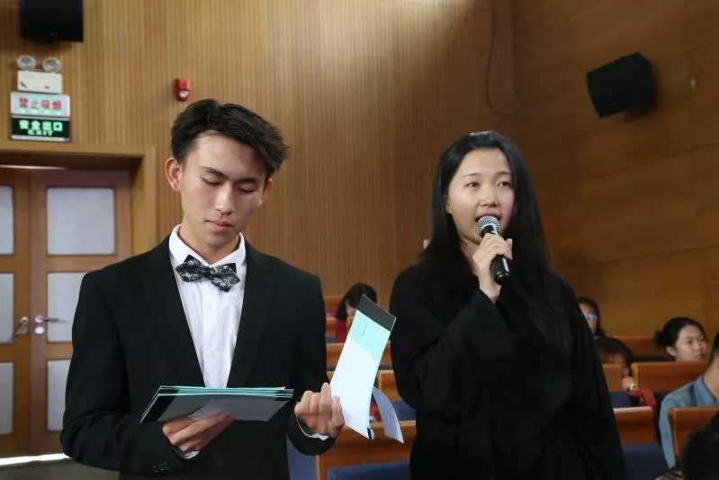 第五环节是人文演绎,选手需要准备8分钟的舞台剧。在参赛同学后台准备的同时,一首京剧《梨花颂》引得台下掌声雷动。舞台剧开演,选手们将自己精心准备的作品呈现在观众眼前,让观众们感到身临其境,揭示了文化交流相互了解,相互尊重的主旨,获得了评委的认可与赞许。施懿展老师肯定了大家的表现,鼓励大家放松演绎会有更好的表现。在等待结果期间,进行了初赛优秀奖的颁奖环节。