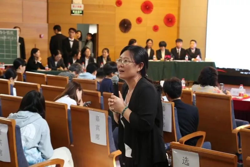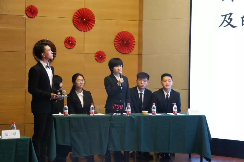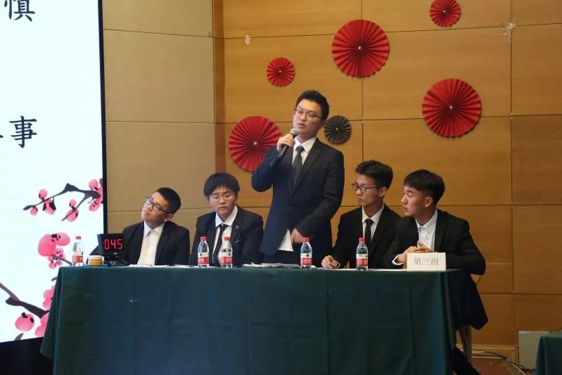 抢答题环节不但拉近了场上比分,选手们的精彩表现更是赢得了在场观众的阵阵掌声,紧接着的是第三环节:即兴说理。在这个环节中,各组派代表抽题,每组代表要根据所抽文章内容从中提取出观点并结合当下,谈谈对一些事物的看法,进行三分钟的演讲。在本环节中,选手们思维敏捷,逻辑清晰,有条不紊地阐述着自己的观点,他们自信从容的演讲将现场氛围推向高潮。谭积仁老师强调,当我们阅读经典时,需要考虑古今中西四个纬度,并尝试对传统进行创造性转化。同学们在解读材料时,要么只注意到古代经典的古代解释;要么只注意到今天的现实生活,而忽略了经典的智慧,较少注意古今之变,更少注意中西比较。此外,提醒同学们,在表达自己的观点时,一要注意语言表达的条理性,二要注意紧扣材料。最后,谭老师预祝同学们在今后的比赛中有更好的表现。