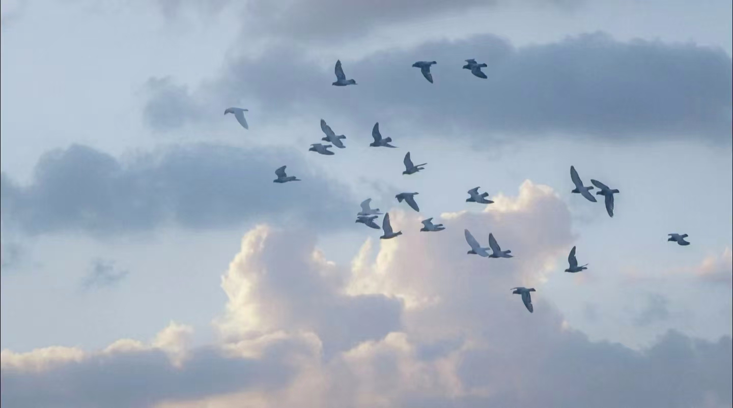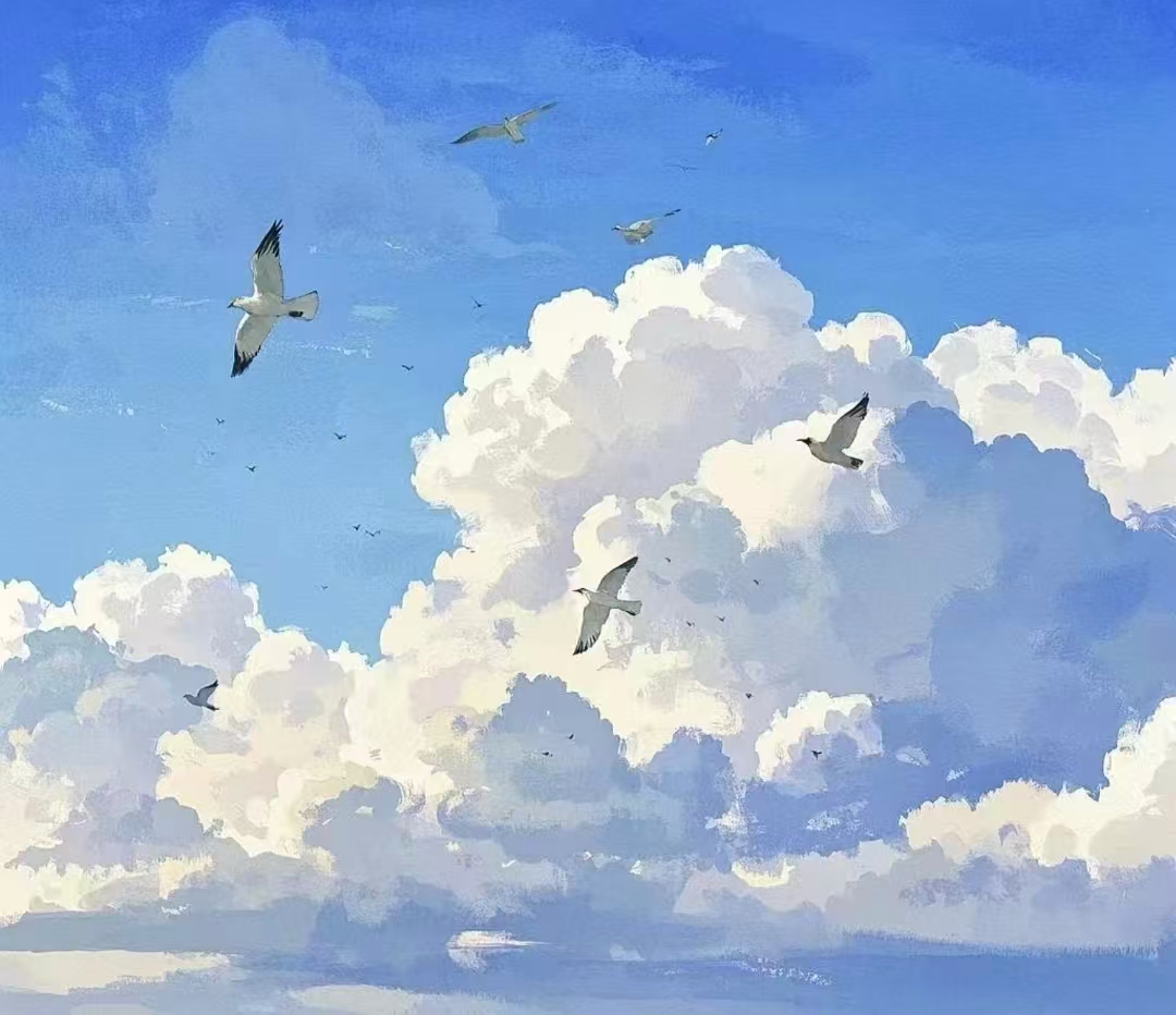 一仰头,恰好看到了天上飞过的鸟儿。它们舒展着羽翼,在蓝天与碧水之间,划出一道优美的弧线,决绝而又自由。这景象,多像我们此刻的写照。