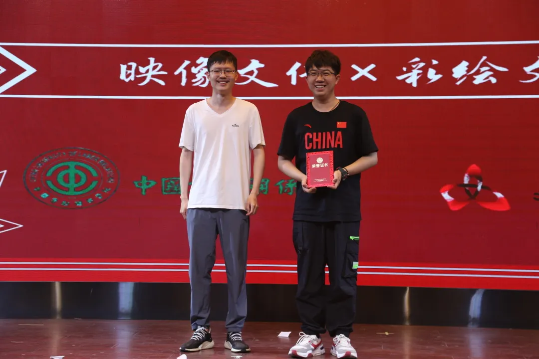 颁奖结束后,第十届“彩绘文传”决赛结果也已经产生。颁奖仪式开始举行,同样由学生会主席路冕学长和学生会宣传部部长叶思彤学姐为各位获奖选手进行颁奖并合影留念。