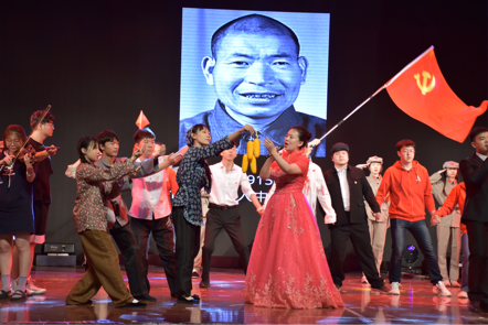 节目开场,大学生村官在扶贫道路上遇到了许多困难和阻碍,不由自主地产生情感的共鸣。接着,通过一本书和一场梦,两名不同时代的青年党员展开了一场跨越时空的交谈。在这场世纪对话中,年轻党员坚定了自己的初心、明确了自己的使命,决定在扶贫攻坚的道路上一步一个脚印,拾级而上。他又一次向着党旗庄严宣誓,“不忘初心跟党走,砥砺前行再出发”。最后,伴着钢琴和小提琴的动人旋律,一曲《不忘初心》唱出了文化传播学院的风采,唱出了工农联盟的强大伟力,唱出了暖人心脾的军民鱼水情,唱出了党的初心和使命!