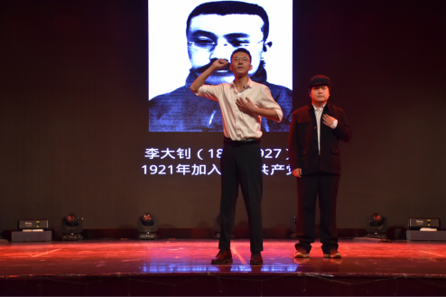 当初接到邓中夏这个角色,距离演出只有五天时间,心里还是很忐忑的。之后在与大家一起创作的过程中,为了能找到革命先烈的那种力量,我找了很多影视剧的模版;为了能够演出脚瘸的样子,我把石子放到鞋里,来体验这种感觉。两位辅导员老师也在角色演绎上提供了很多帮助。从排练到演出,每一位演职人员都是最棒的!