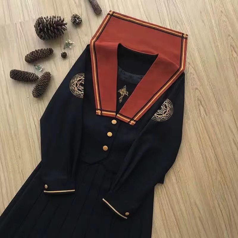 而西式制服主要是从西服上汲取的灵感,大部分是衬衫+格裙+西服,更偏英伦风一些。
