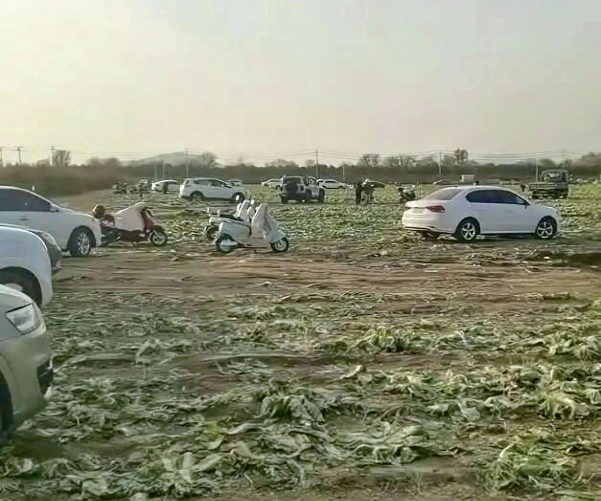 起初,有网友声称赤峰某地“白菜免费”。这样毫无事实依据的说法,却凭着“免费捡漏”的噱头快速传播。消息一经传出,一些村民骑着电动车来挖白菜,菜地承包者李先生简单劝说无果,无奈之下便由村民带走了几棵白菜。而将事件推向白热化的,则是当地一家认证媒体未深入核实就报道的行为。这直接给这场哄抢按下了“加速键”,参与哄抢白菜的人从起初的七八个快速增加到了七八百个,数量呈爆炸式增长。短短两天内地里的白菜被扫荡一空,让事件从无端造谣演变成了一场哄抢的悲剧。