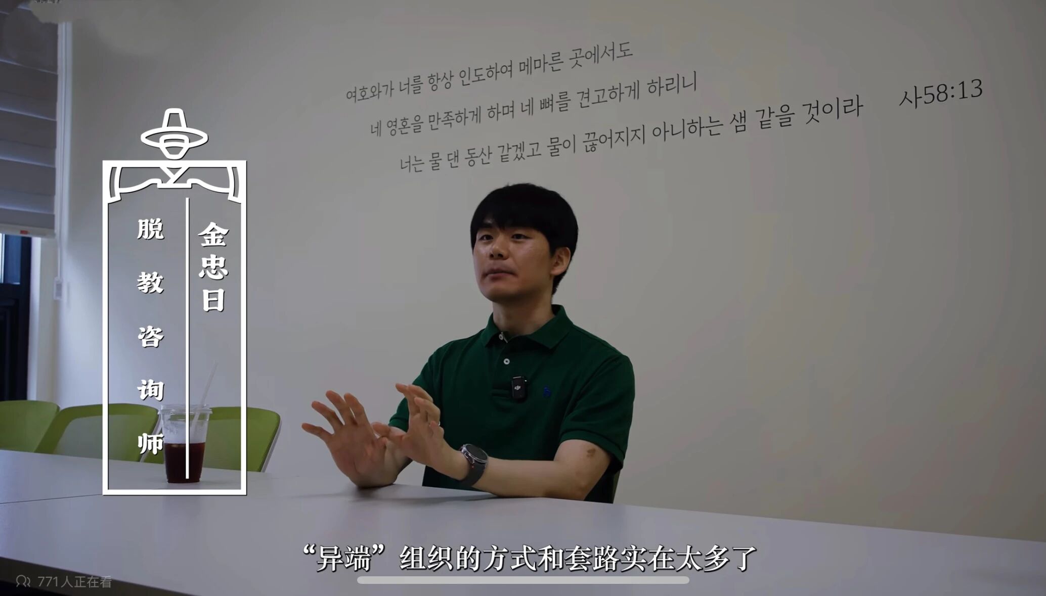 而他们口中的韩国文化,即这种宗教,一开始总是会寻找一些处于失业、失学或者生病等有着某种“缺陷”的、内心脆弱的人,然后掌控你的信息和社会关系,不断地给你洗脑,让你按照他们的意图进行思考和判断,给你提供一种假希望,实则精神操控着你,最终你会陷进去,损失钱财和自己的思考能力,侵犯他人的人权和幸福权,破坏公共秩序。不仅如此,一旦陷入邪教,就会陷入隧道视野,只愿意看自己想看的,只愿意听自己想听的,本能地抗拒相反的事物,因此会越陷越深。
