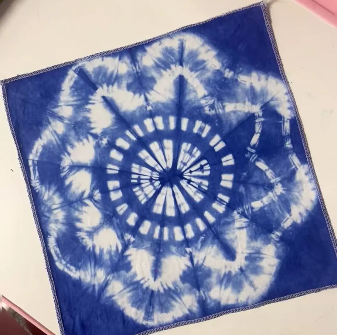 扎染,古称扎缬、绞缬、夹缬和染缬,是中国民间传统而独特的染色工艺。通过纱、线、绳等工具对织物进行扎、缝、缚、缀、夹等多种形式组合,之后进行染色,因其独特的艺术效果和手工制作的特点,被视为中国传统手工染色技术的瑰宝。