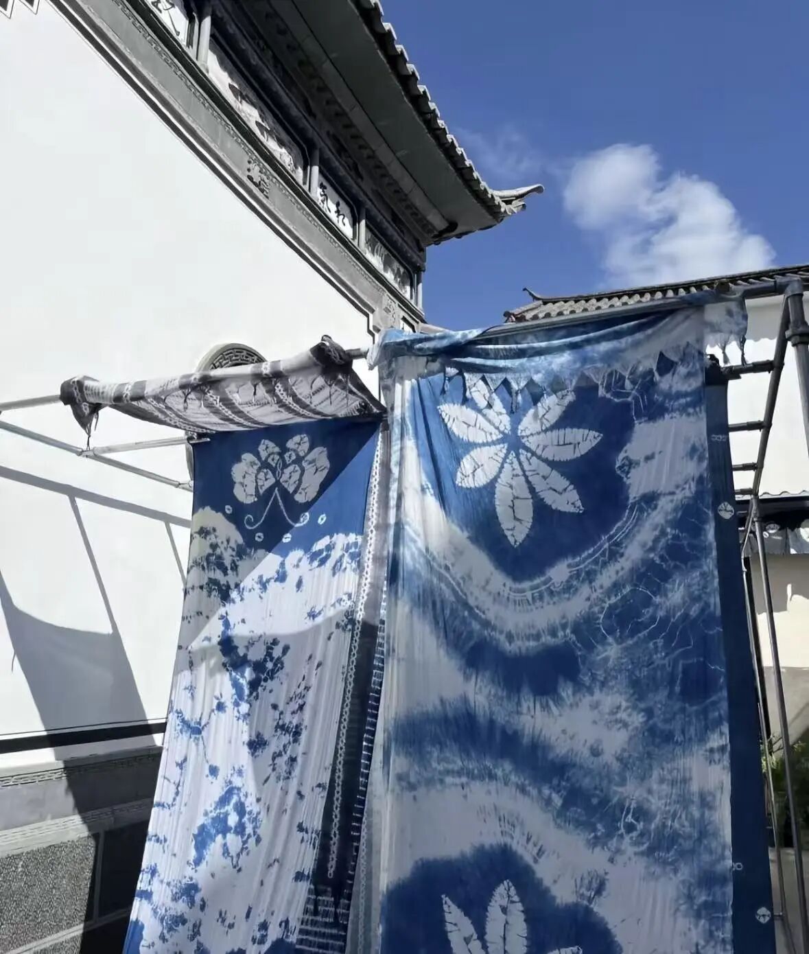 扎染的文化意义,远不止于一项染色技艺。在传统农业社会,扎染图案并非随意为之。白族扎染中常见的“蝴蝶纹”,象征着多产与生命力;“梅花纹”寓意坚韧与希望;“水波纹”则是对洱海的生命礼赞。妇女们通过一针一线,将自然界的秩序与族群对世界的理解编码于日常织物之上,使穿衣蔽体这一行为,升华为与自然和祖先的精神对话。它是以最朴素的方式,践行“天人合一”的宇宙观。