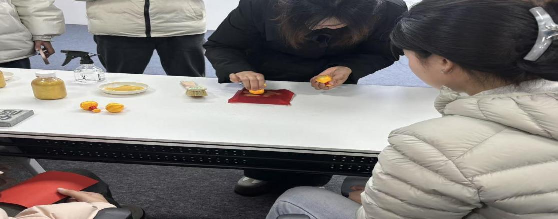 然而最令我印象深刻的还是非遗拓印。课后通过瀚辰文创工作室负责人对有关非遗拓印的介绍,得知公司于2025年成立,以非遗拓印为起点不仅仅是因为喜欢也是为了能将器物上那些即将沉睡的故事,翻译成现代人愿意倾听、愿意带走、愿意继续讲述的语言。负责人卓老师提到:“我想让更多年轻人看见它的美。”