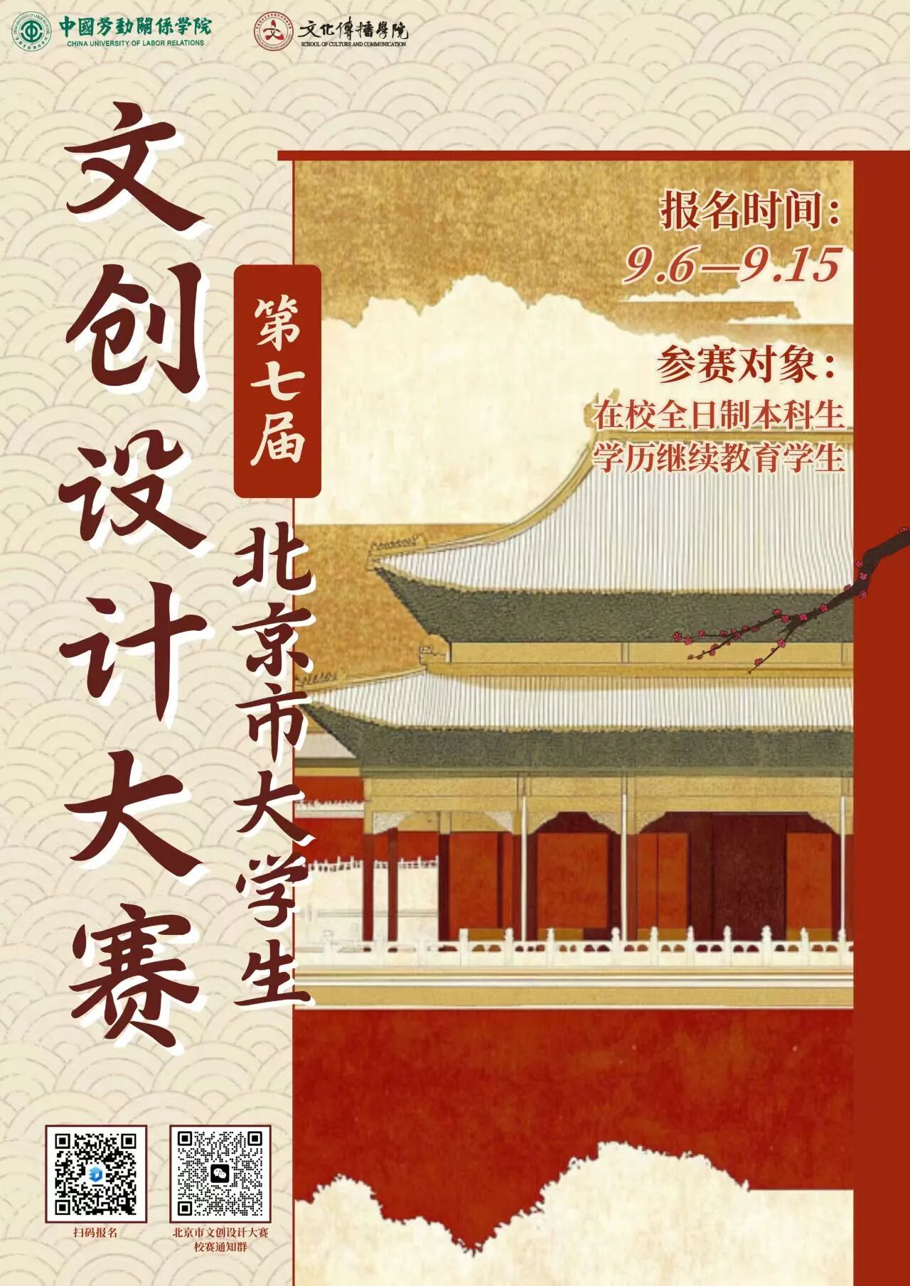 由北京市教育委员会主办、中国地质大学(北京)承办的2025年第七届北京市大学生文化创意设计竞赛已正式启动,旨在依托北京丰富的历史文化资源,激发大家的设计创意潜能与创新创业热情,还能帮大家提升创新和实践能力,更能为首都“四个中心建设”贡献青春力量,是展现才华、交流学习的好机会,欢迎同学们积极参与!